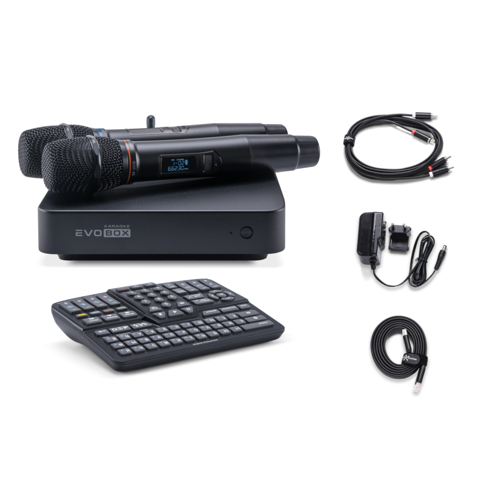 EVOBOX Plus – абсолютно нова домашня караоке-система від Studio Evolution. Яскравий дизайн, неперевершена якість звучання й нові можливості для любителів караоке: EVOBOX Plus – це найкраща караоке-система для дому та бізнесу. Преміальна караоке-система для дому EVOBOX Plus - 41 000 пісень у базі. Оригінальні відеокліпи до топових хітів. Пакетне оновлення бази (пакети «1 місяць», «1 рік»).