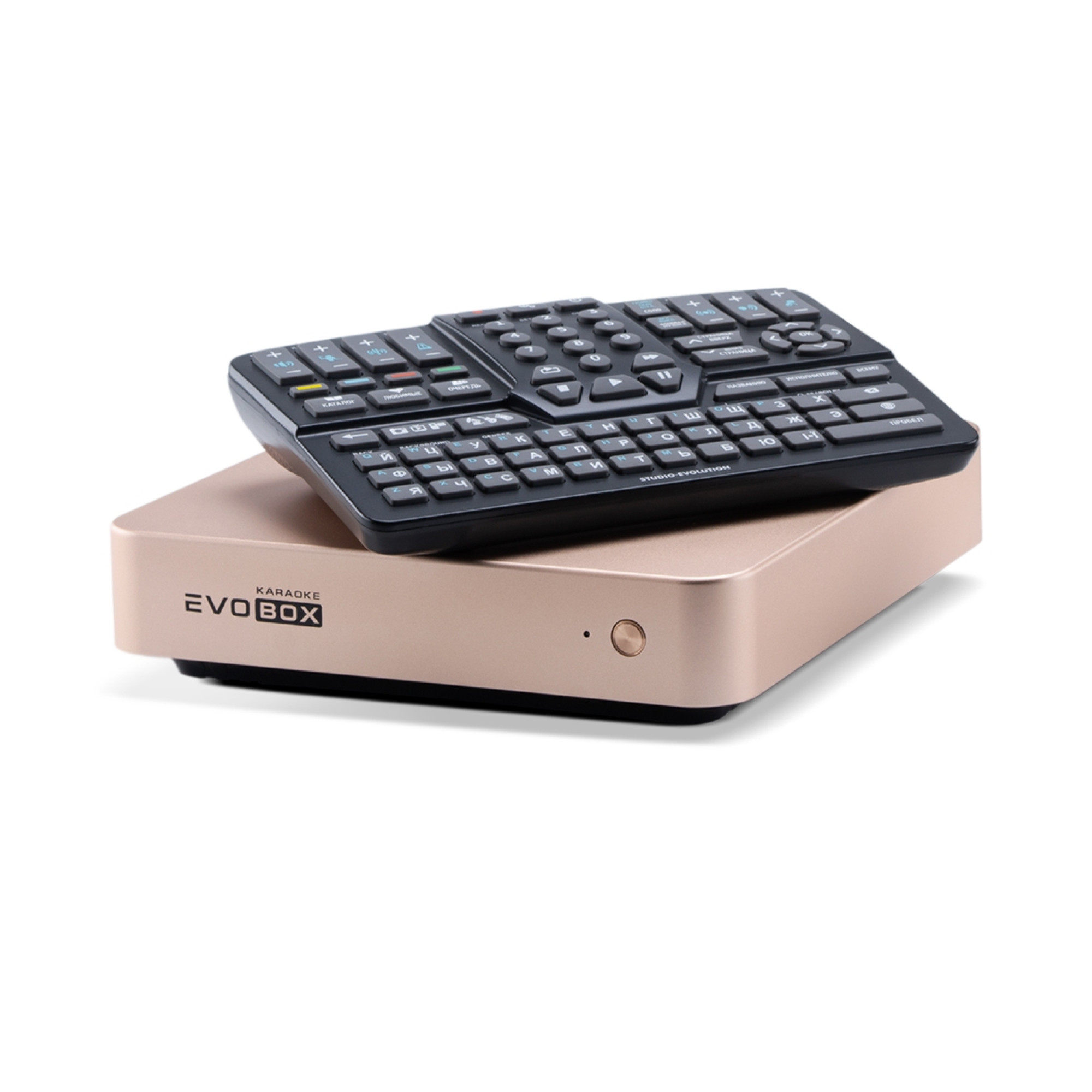 Керувати новою караоке-системою для дому EVOBOX Plus дуже легко та зручно. Новий Bluetooth-пульт із повнорозмірною клавіатурою й функціональними клавішами дозволить Вам миттєво розібратися у всіх налаштуваннях караоке-системи. Для любителів гаджетів розроблені спеціальні програми для керування EVOBOX Plus з планшета або смартфона.