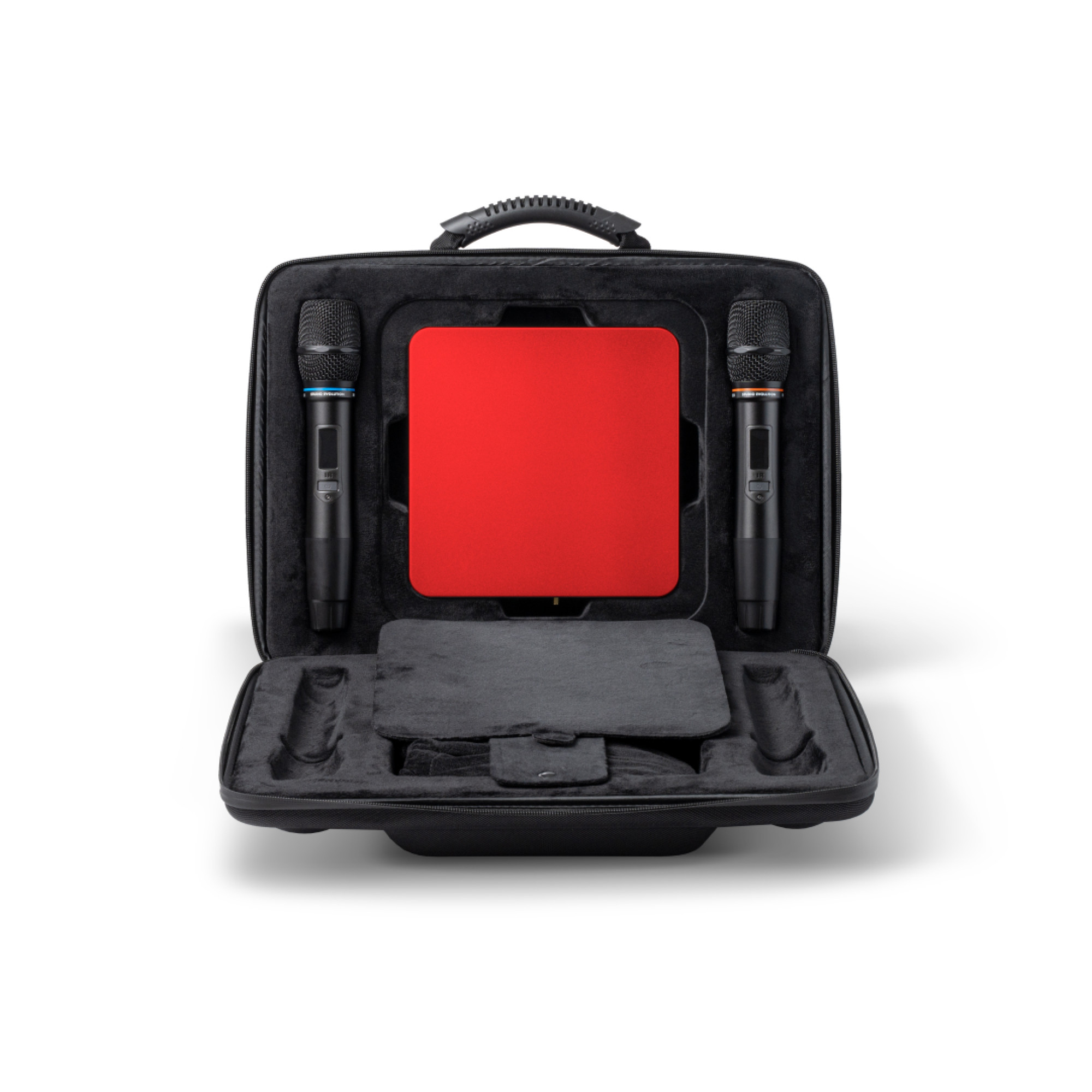 2 бездротові мікрофони, Bluetooth пульт ДК, 2x Аудіокабелі RCA-RCA, Кабель HDMI, Блок живлення, Кейс, Посібник користувача
