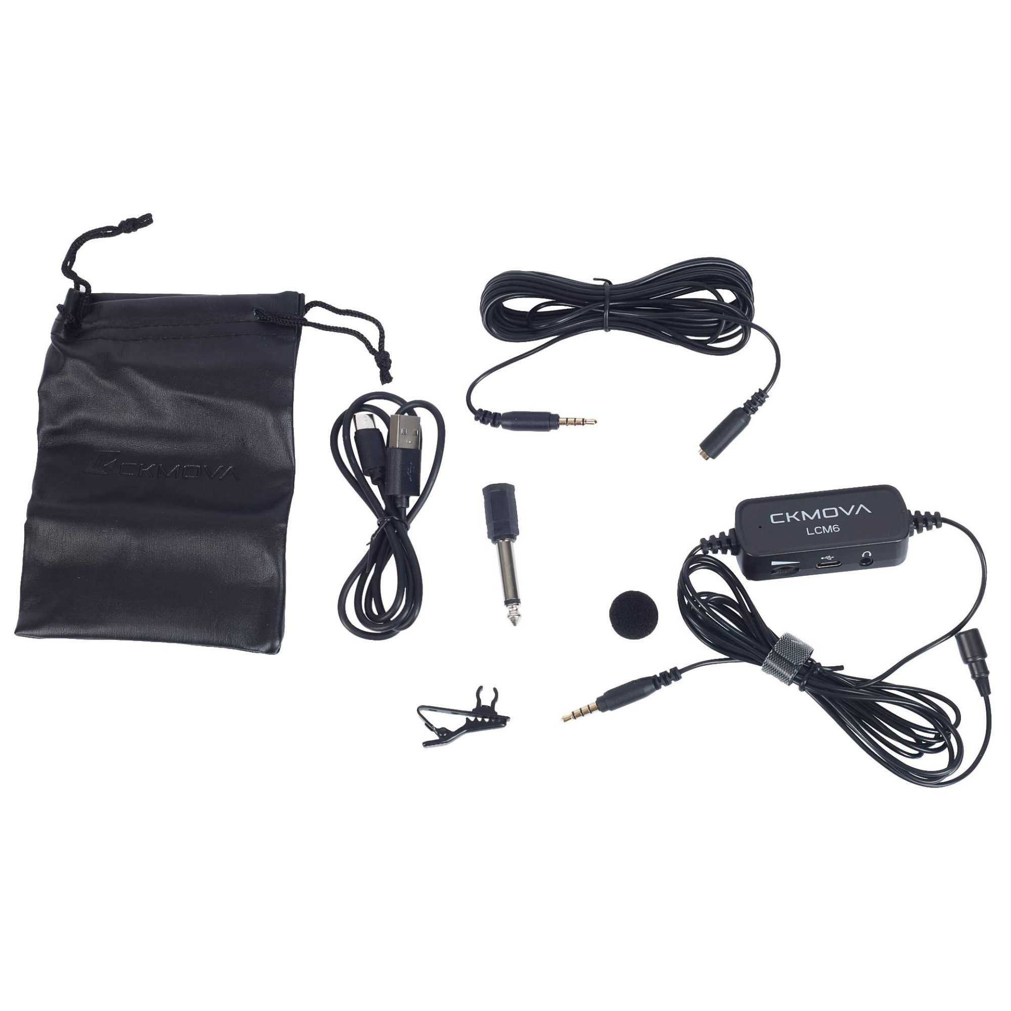 CKMOVA LCM6 – це професійний всеспрямований конденсаторний петличний мікрофон з широким спектром застосування. Мікрофон працює зі смартфонами, камерами, та іншими пристроями, які мають TRRS роз'єм, а загальна довжина кабелів дає велику свободу при використанні. Завдяки функції Plug & Play мікрофон можна підключити до пристрою та відразу ж насолоджуватися його роботою. При повній зарядці акумулятора мікрофон працює близько 40 годин. Загальна довжина шнурів дозволяє застосовувати мікрофон в різних ситуаціях – від студійної зйомки до запису інтерв'ю або ведення відеоблогів.