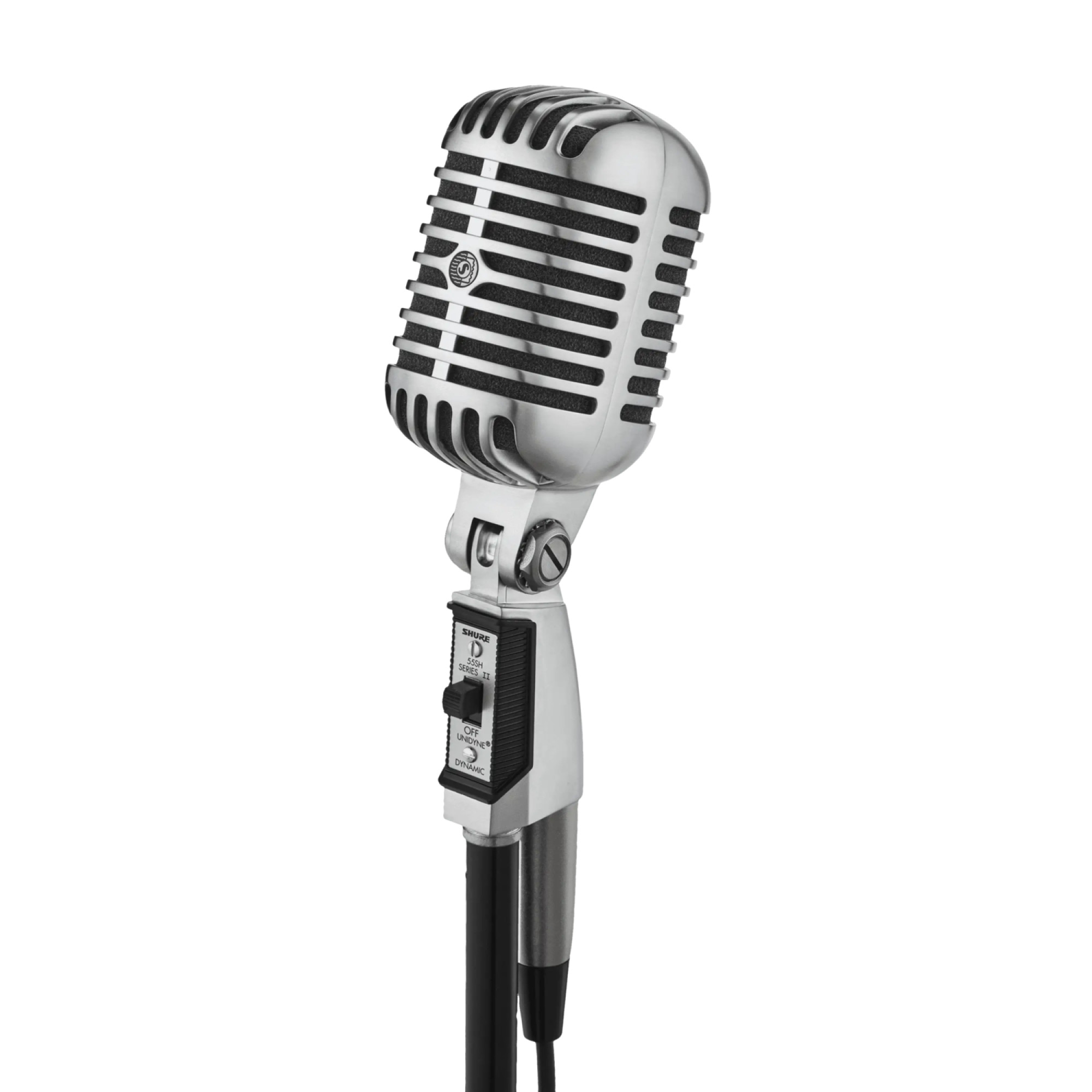 Shure 55SH SERIES II – це іконічний дизайн Shure UNIDYNE у поєднанні із сучасними акустичними компонентами, що відповідають сьогоднішнім стандартам продуктивності. Цей мікрофон відмінно підходить для вокалу з характерним для Shure піком присутності. 55SH Series II має кардіоїдну (односпрямовану) полярну діаграму спрямованості, яка мінімізує захоплення звуку із задньої частини мікрофона. Це дозволяє використовувати модель 55SH Series II у безпосередній близькості від гучномовців без виникнення зворотного зв'язку, і вона може працювати в несприятливих акустичних умовах, коли всеспрямовані мікрофони не можуть цього зробити. Мікрофон 55SH Series II має низькоомний балансний вихід, призначений для підключення до мікрофонних входів із опором від 75 до 300 Ом. Мікрофон оснащений картриджним амортизаційним кріпленням для зниження шуму стійки, перемикачем увімкнення/вимкнення і поворотним кріпленням, що самонатягується, з різьбленням 5/8"-27. Цей мікрофон ідеально підходить для систем звукового оповіщення або театральних сцен, а також для мовлення, запису та інших звукових додатків, де бажано використовувати мікрофон на стійці із класичним зовнішнім виглядом.