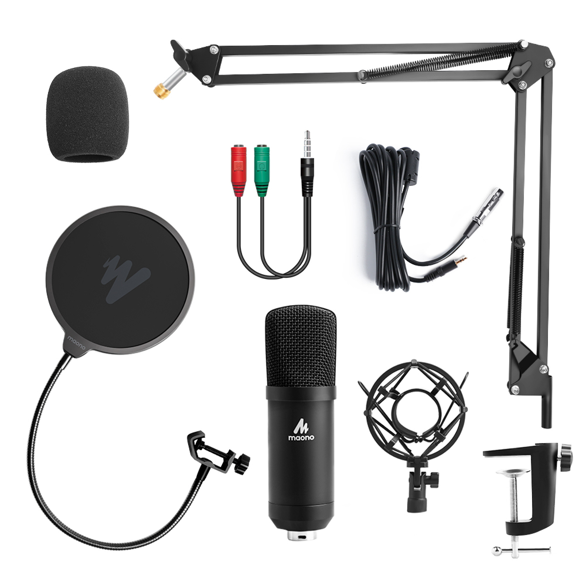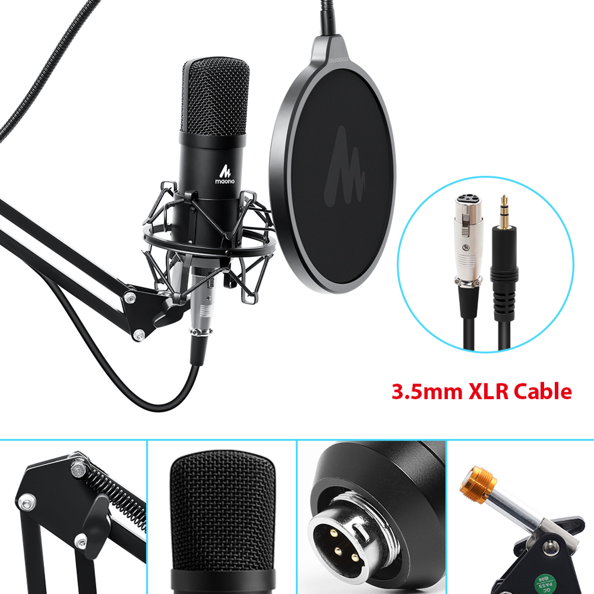 - Міцний набір кронштейнів: з поп-фільтром і пінопластовим вітрозахистом, конденсаторний мікрофон записує Ваш голос і кришталево чистий звук, а амортизатор тримає мікрофон стабільно з функцією демпфування