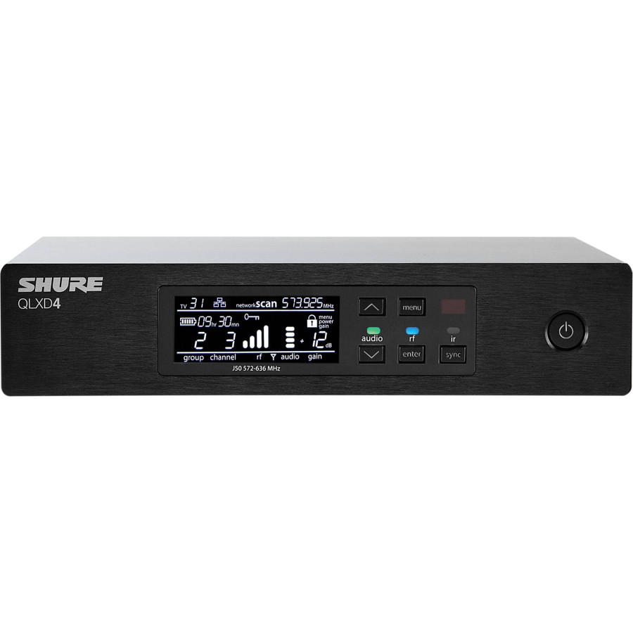 Shure QLXD4 – це цифровий напіврековий бездротовий приймач, який має міцний цільнометалевий корпус. Він працює з широким вибором мікрофонів і передавачів Shure, включаючи натільні передавачі QLXD1 і ручні передавачі QLXD2, які забезпечують повну мобільність для ведучих/виступаючих. Приймач забезпечує звук професійної якості, надійну радіочастотну передачу та безпечне 256-бітове шифрування даних AES. Простий у налаштуванні та експлуатації, він ідеально підходить для використання в системах телевізійного мовлення або звукопідсилення в середніх за розмірами залах та молитовних будинках. У приймачі використовується цифрова комутація Diversity для захисту передачі від перешкод та забезпечення стабільності радіочастотного сигналу без аудіоартефактів. Великий РК-екран та інтуїтивно зрозумілі елементи керування дозволяють швидко виконувати налаштування навіть за умов недостатнього освітлення. Додаткові функції включають автоматичне сканування частоти, ІЧ-синхронізацію та внутрішнє обмеження для запобігання кліпінгу. Мережа Ethernet дозволяє здійснювати точний моніторинг та керування системою в режимі реального часу, а також автоматичну координацію частот кількох приймачів за допомогою програмного забезпечення Wireless Workbench (WWB) для Mac/Windows.