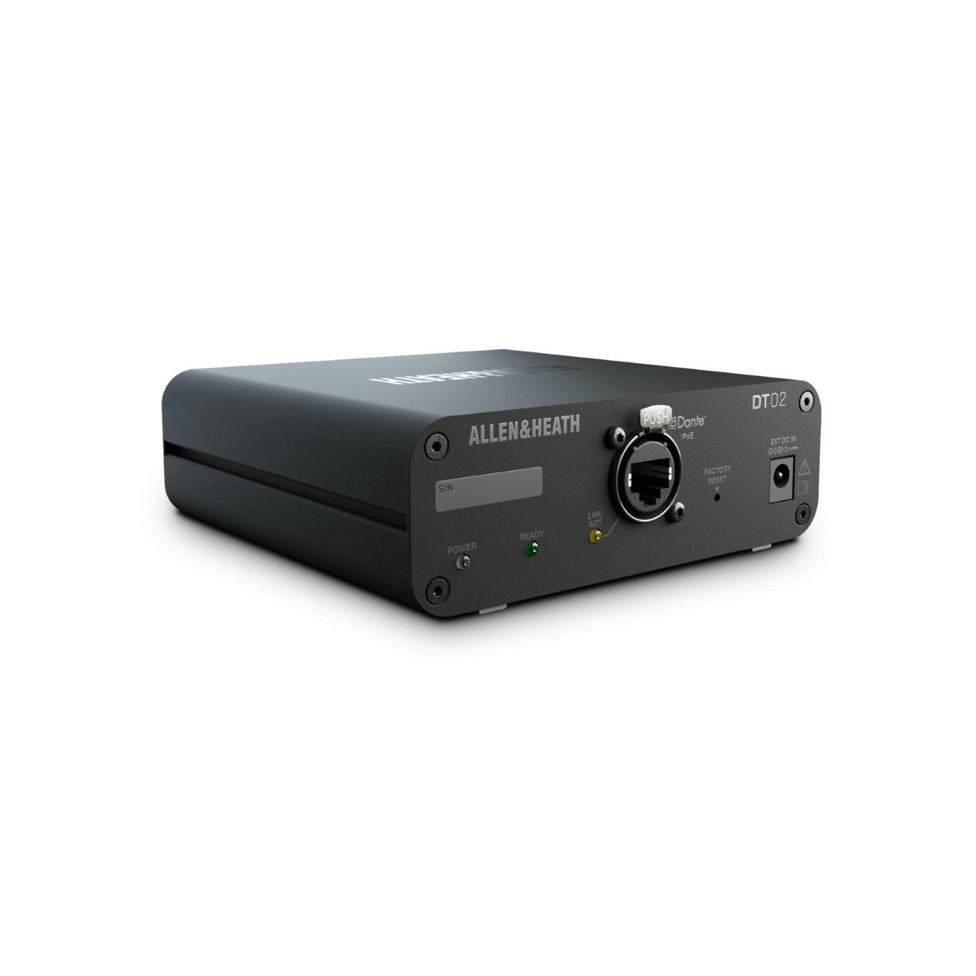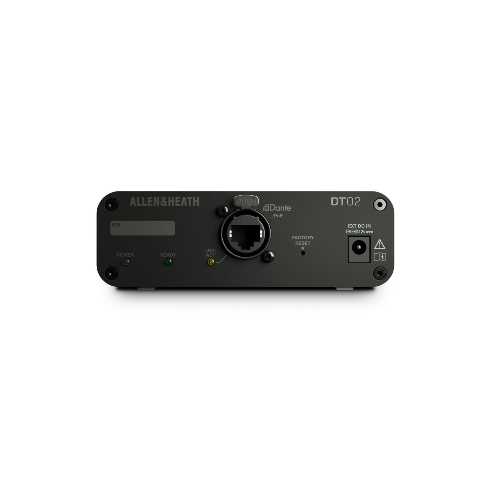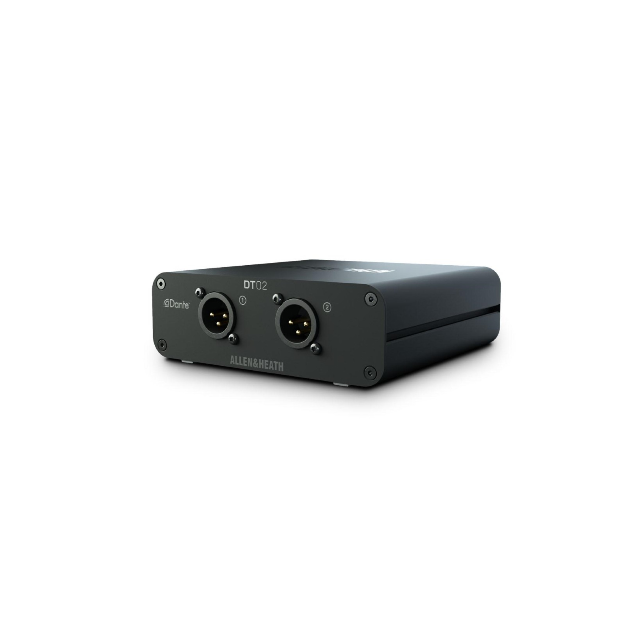 Allen & Heath DT02-X - це компактний і портативний інтерфейс, призначений для перетворення двох каналів аудіо в форматі Dante у пару лінійних виходів XLR. Це дозволяє легко підключати аналогове обладнання до мережі Dante як для установки, так і для живих виступів.