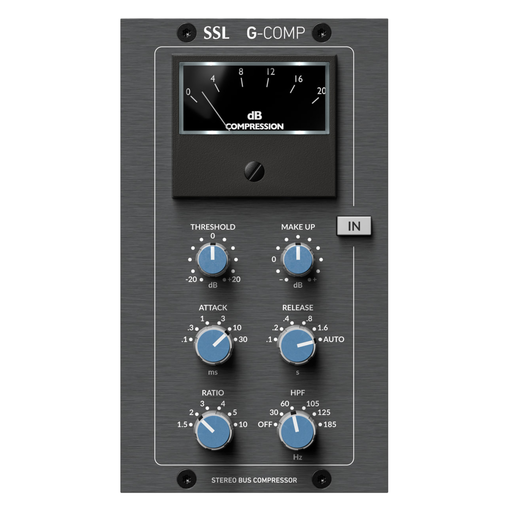 Додаткові налаштування коефіцієнта компресії 1,5 / 3 / 10 дозволяють гнучко налаштовувати звук під Ваші потреби. Відомий режим Auto автоматично налаштовує Solid State Logic Stereo Bus Compressor під Ваш мікс, забезпечуючи оптимальну динаміку без додаткових зусиль.