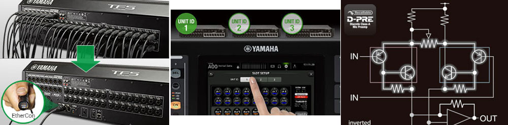 Tio1608-D оснащений високоякісними дискретними преампами D-PRE студійного рівня типу Class A з цифровим керуванням, розробленими Yamaha.
