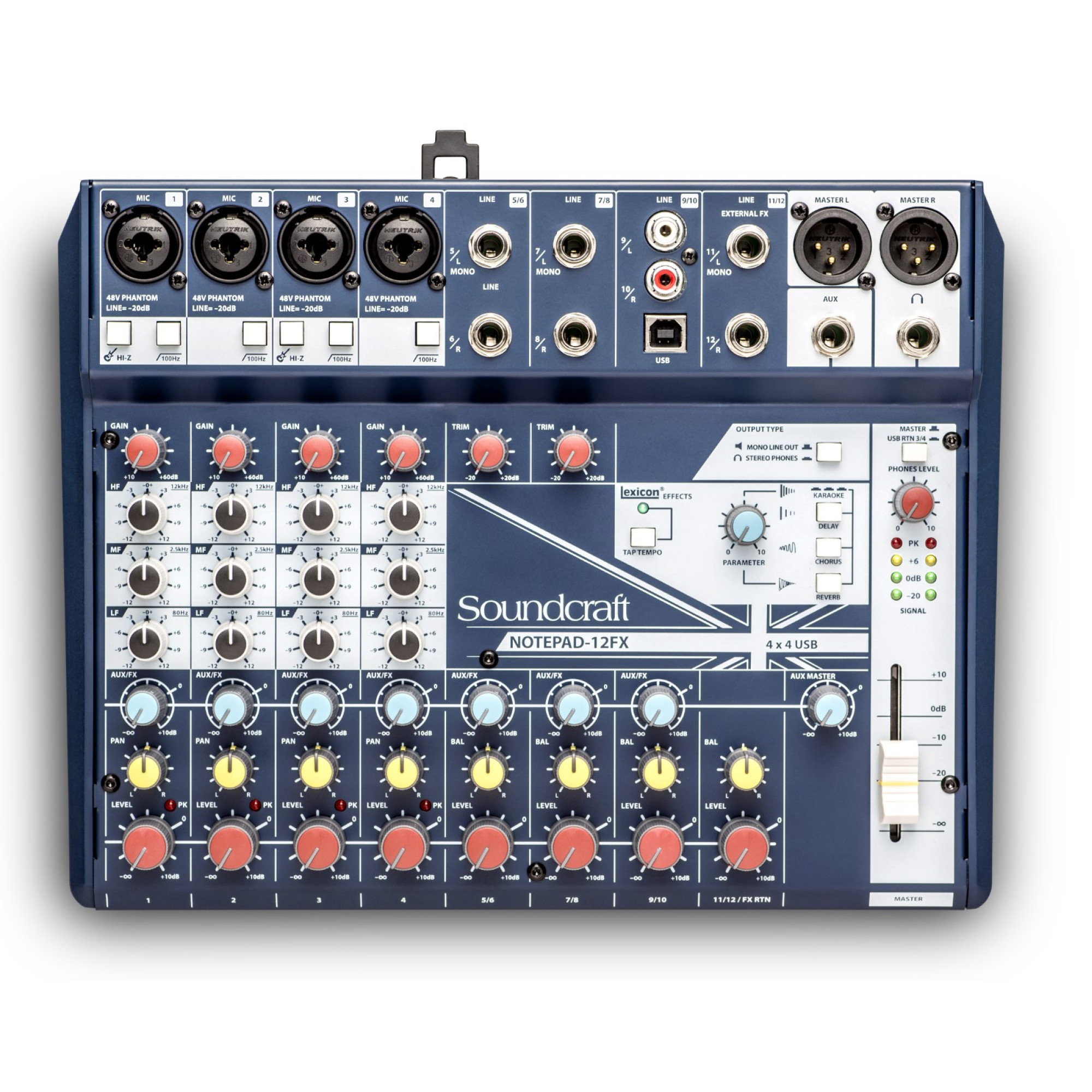 Цей мікшерний пульт має 12 каналів, включаючи 4 мікрофонні входи з фантомним живленням. Вбудовані ефекти Lexicon дозволяють додавати реверберацію, хорус, дилей до звуку, роблячи його більш живим та привабливим.