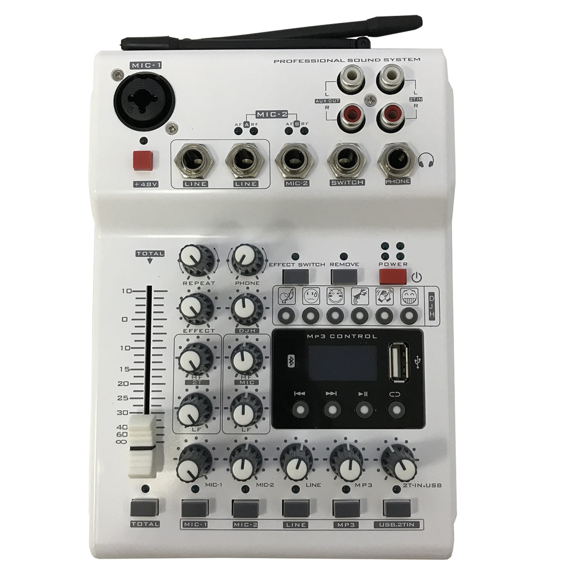 Мікшерний пульт RMI-688 із 2 мікрофонами. Комплект мікрофонів та мікшера зручніший у використанні. Мікшер є багатоцільовим виробничим мікшером з 2 каналами зі звуковою картою, який може задовольнити потреби користувачів у домашньому створюванні музики, веб-трансляціях, піснях та інших потребах. Мікшерний пульт оснащений вхідним посиленням і регулюванням високих басів, фантомним живленням 48 В, вбудованим конденсатором мікрофона, прямим живленням, портом для виходу на навушники високої чіткості, MP3 плеєром, завдяки наявності звукової карти можна безпосередньо підключити до ПК.