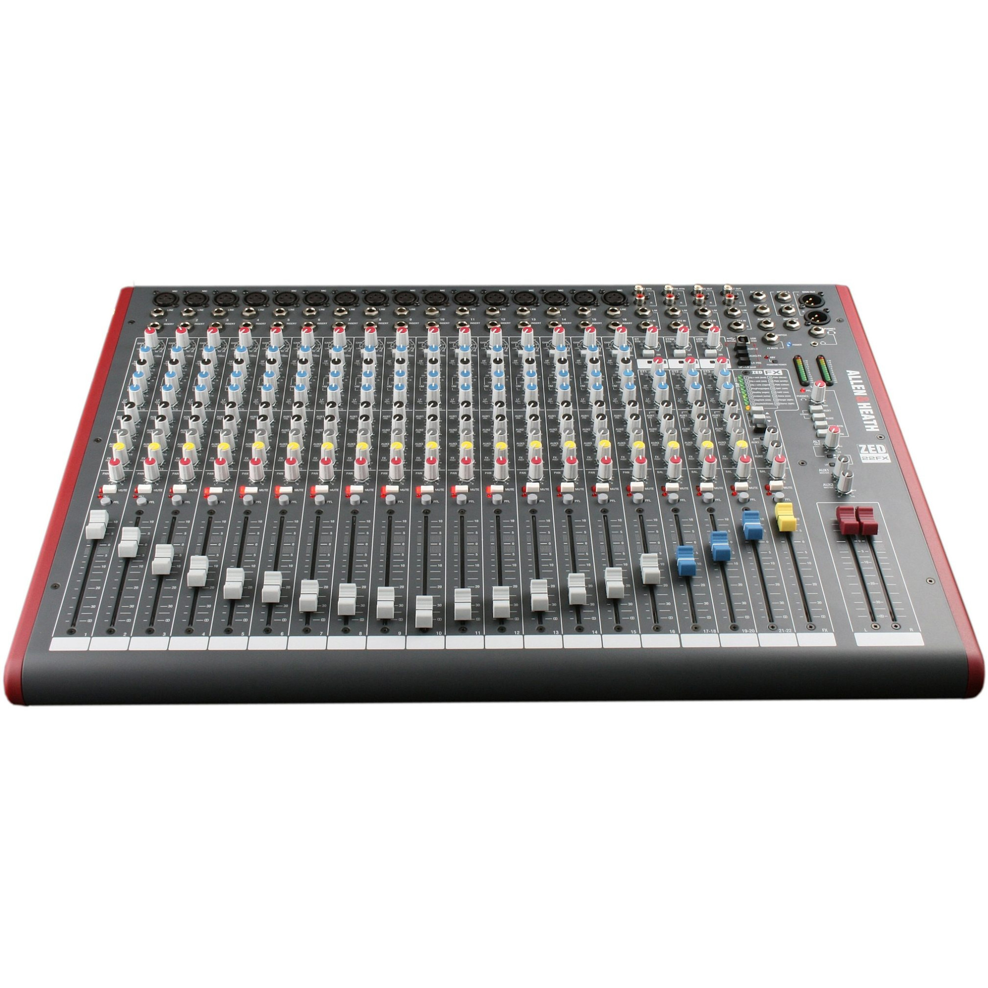 Завдяки 16 моно та 3 стерео каналам, Allen & Heath ZED22FX дозволяє Вам створити потужні та багатогранні звукові композиції. Додаткові 3 стерео канали, включаючи ST, 2TRK та USB на LR, або паралельно основному стерео, розширюють Ваші творчі можливості, забезпечуючи більше гнучкості у роботі зі звуком.