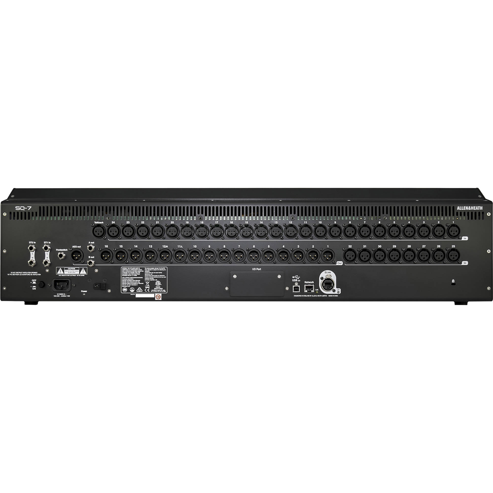 Allen & Heath SQ-7 – це цифровий мікшерний пульт з 33 фейдерами в серії SQ, що працює на революційному процесорі XCVI FPGA від Allen & Heath. SQ-7 створений для роботи в найважливіших моментах, таких як аудіо-відео записи, корпоративні заходи, живі виступи. Забезпечує бездоганну якість звуку з високою роздільною здатністю і наднизьку затримку <0,7 мс. Мікшерний пульт оснащений 32 винятковими вбудованими мікрофонними передпідсилювачами, а також 8 стерео процесорами FX з виділеними стереоканалами повернення і доступом до відомої бібліотеці RackExtra FX. SQ-7 є відмінним вибором для навушників-моніторів, забезпечуючи 12 стереоміксів (конфігуруються як групи або допоміжні), в той час як автоматичне мікшування мікрофонів робить його чудовим пристроєм для конференцій, переговорів, тощо.