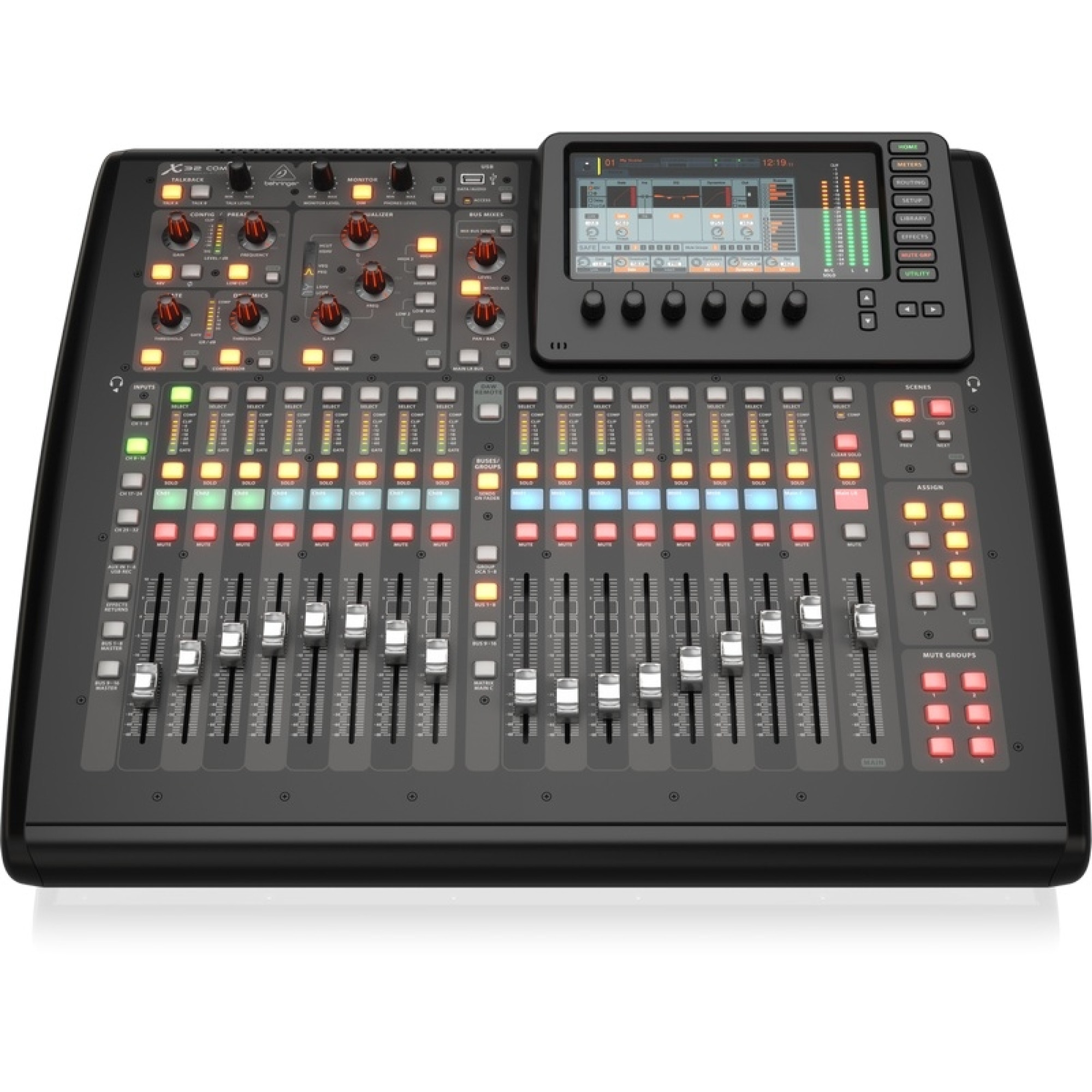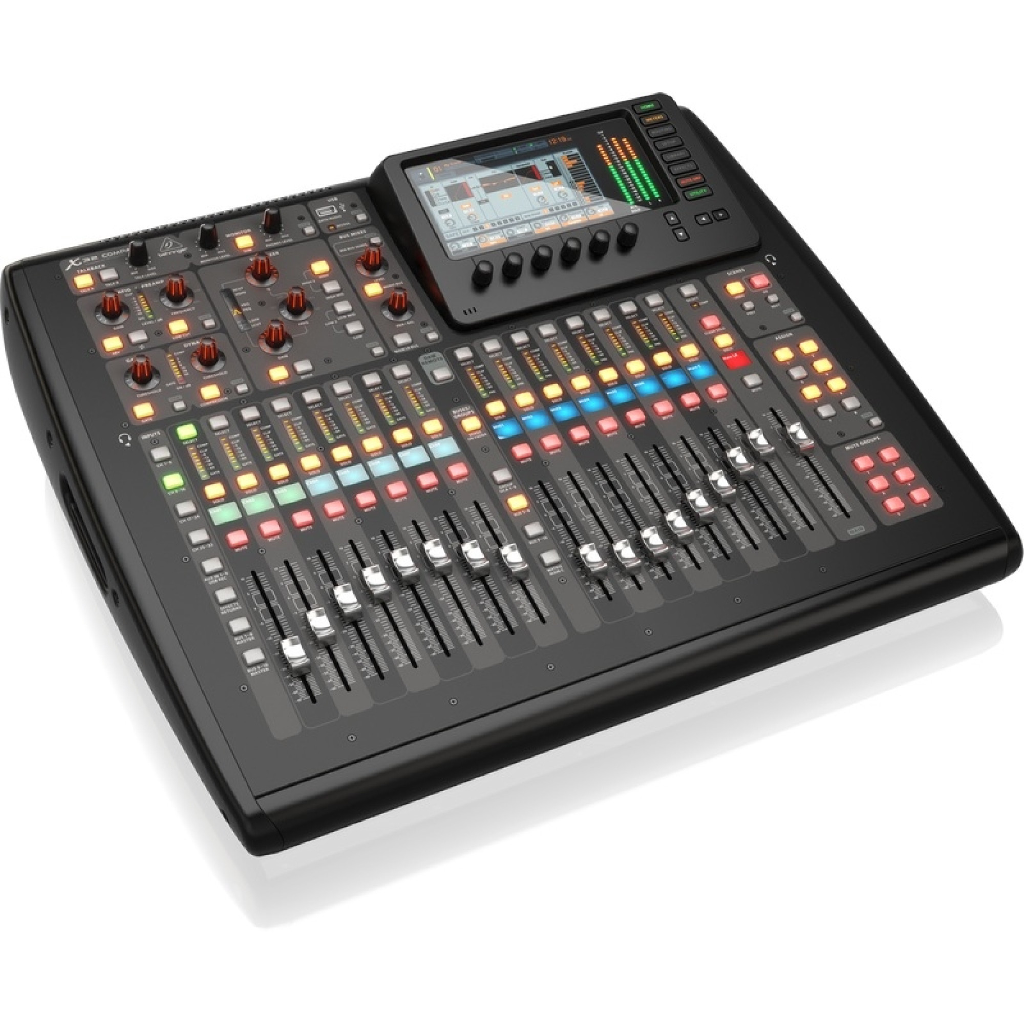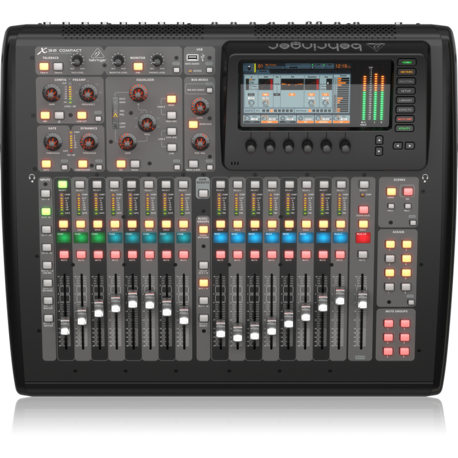 Маючи можливість зберігати до 100 сцен, моторизовані фейдери X32 Compact оживають як тільки Ви оберете потрібний пресет сцени. 7-дюймовий кольоровий TFT дисплей X32 Compact відображає необхідні параметри тоді, коли вони вам потрібні. Вибраний завдяки високій контрастності та зовнішній видимості, TFT ідеально підходить для концертних і відкритих фестивальних майданчиків. По периметру знаходяться високоточні, контекстно-залежними тактильними маніпуляторами.