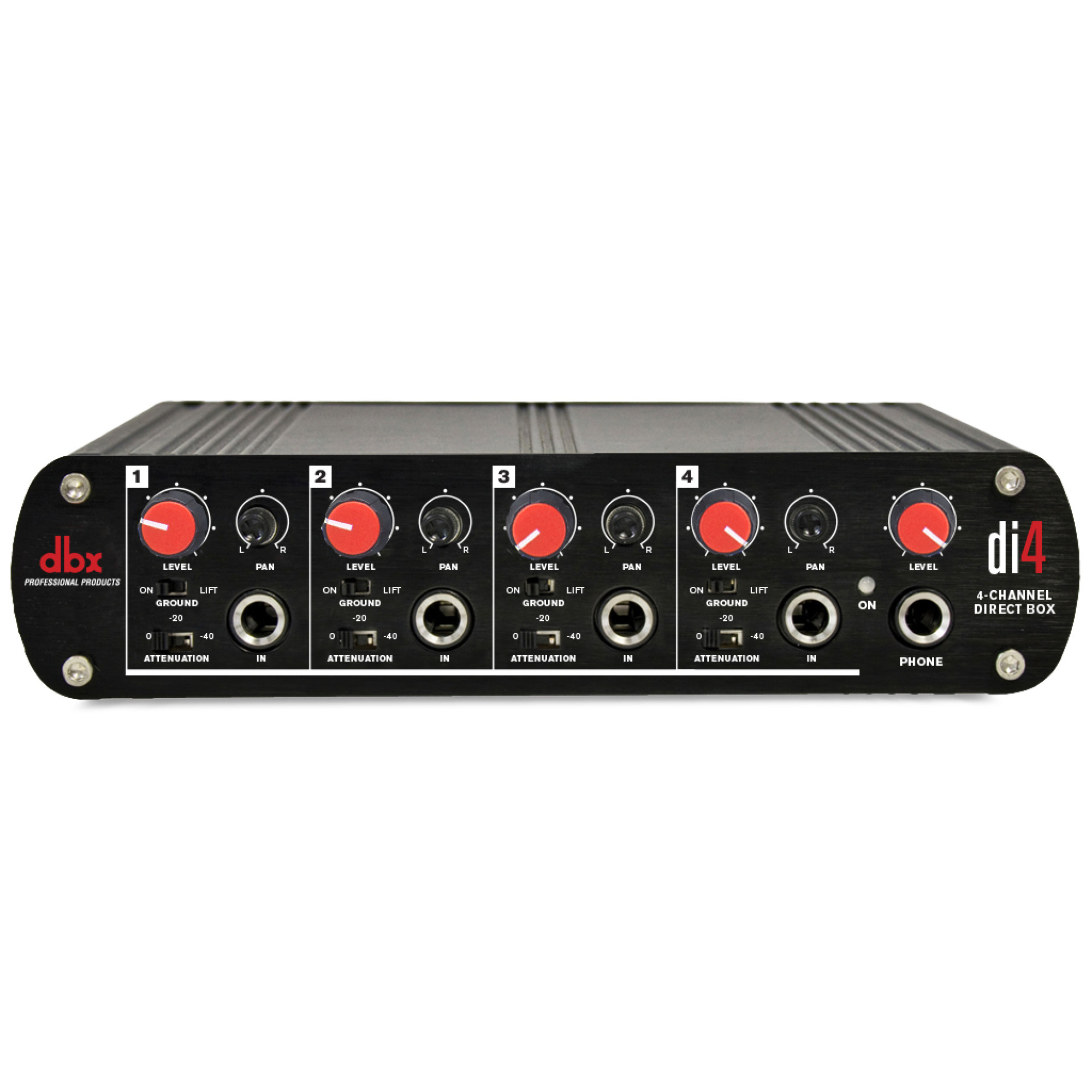 4-канальний Di4 розроблений для використання в якості стандартного інструменту для багатьох аудіозастосувань. Маючи чотири канали, Di4 легко вирішує проблему перетворення небалансних сигналів в балансні вихідні сигнали, придатні для використання в мікшерах, PA, записуючих консолях і т.д. Di4 також працює як багатоканальний лінійний стерео мікшер. Ця функція дозволяє підключити всі ваші клавішні, семплери і модулі всього до одного рекового блоку на сцені і подати незалежні балансні виходи XLR на сценічний бокс для фронт хаус інженера і встановити свій власний незалежний мікс для сценічного моніторингу. Di4 також має вихід для навушників.