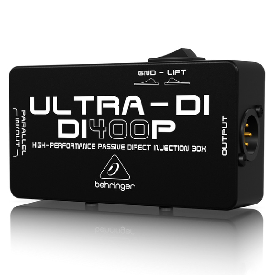 Behringer ULTRA-DI DI400P - пасивний DI-box з узгодженням імпедансу для прямого підключення інструментів до мікшера і перетворенням лінійного сигналу від несиметричного звукового джерела в симетричний мікрофонного рівня (ослаблення -20 дБ).