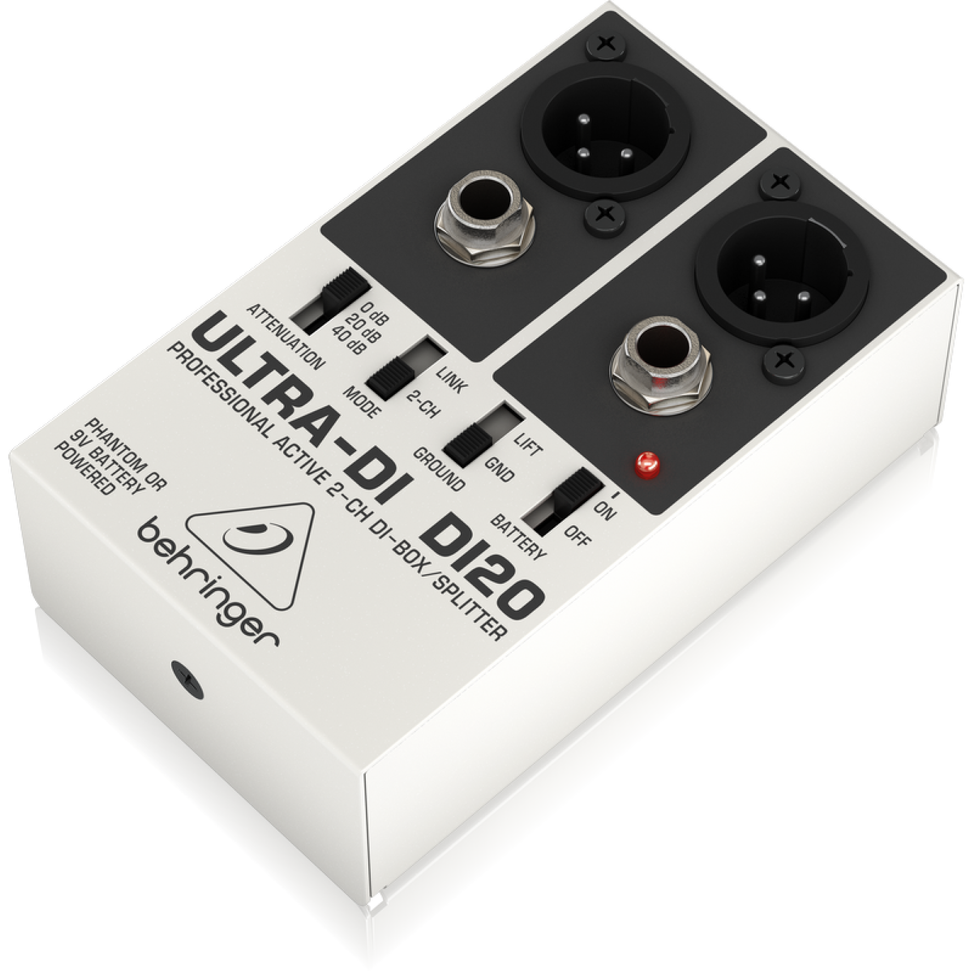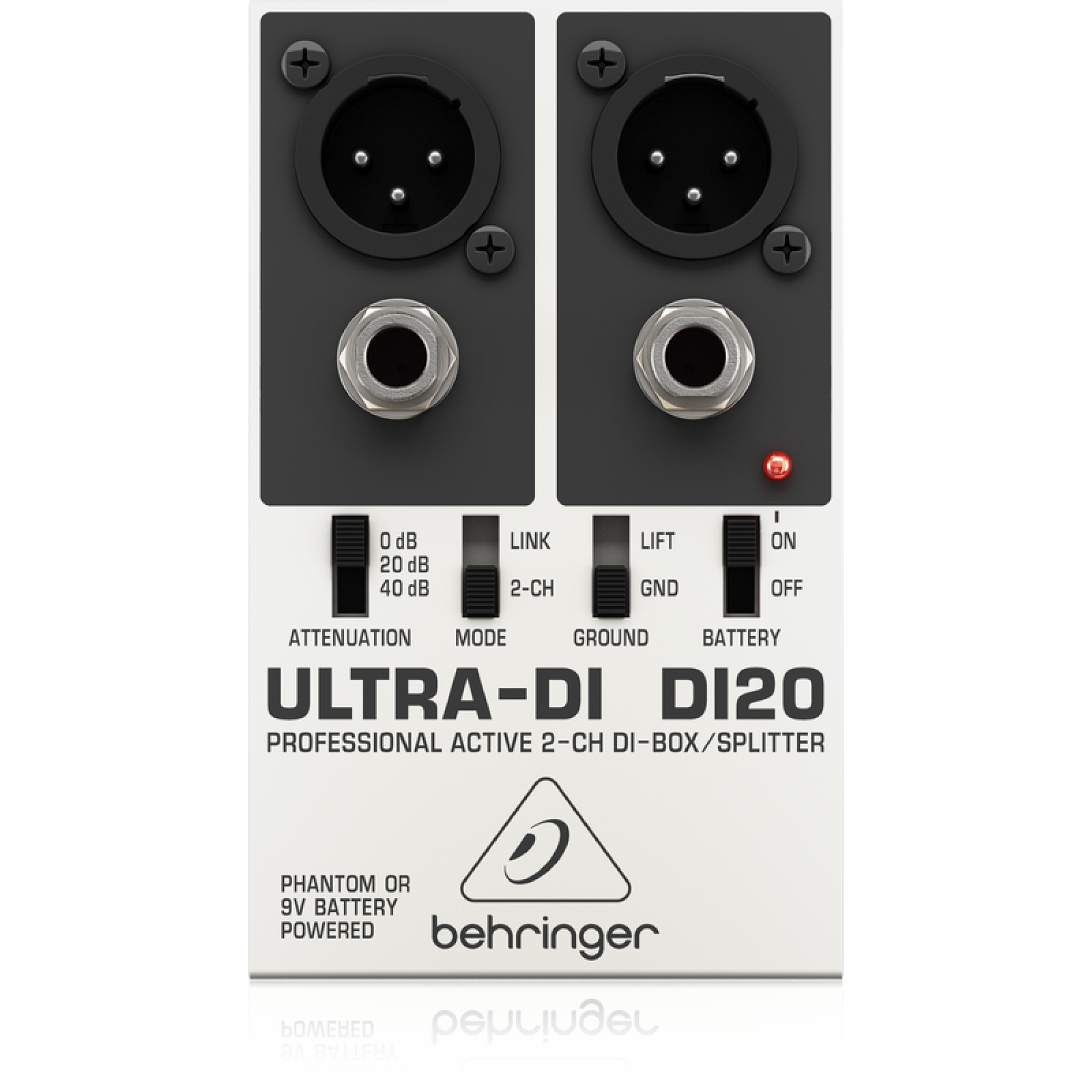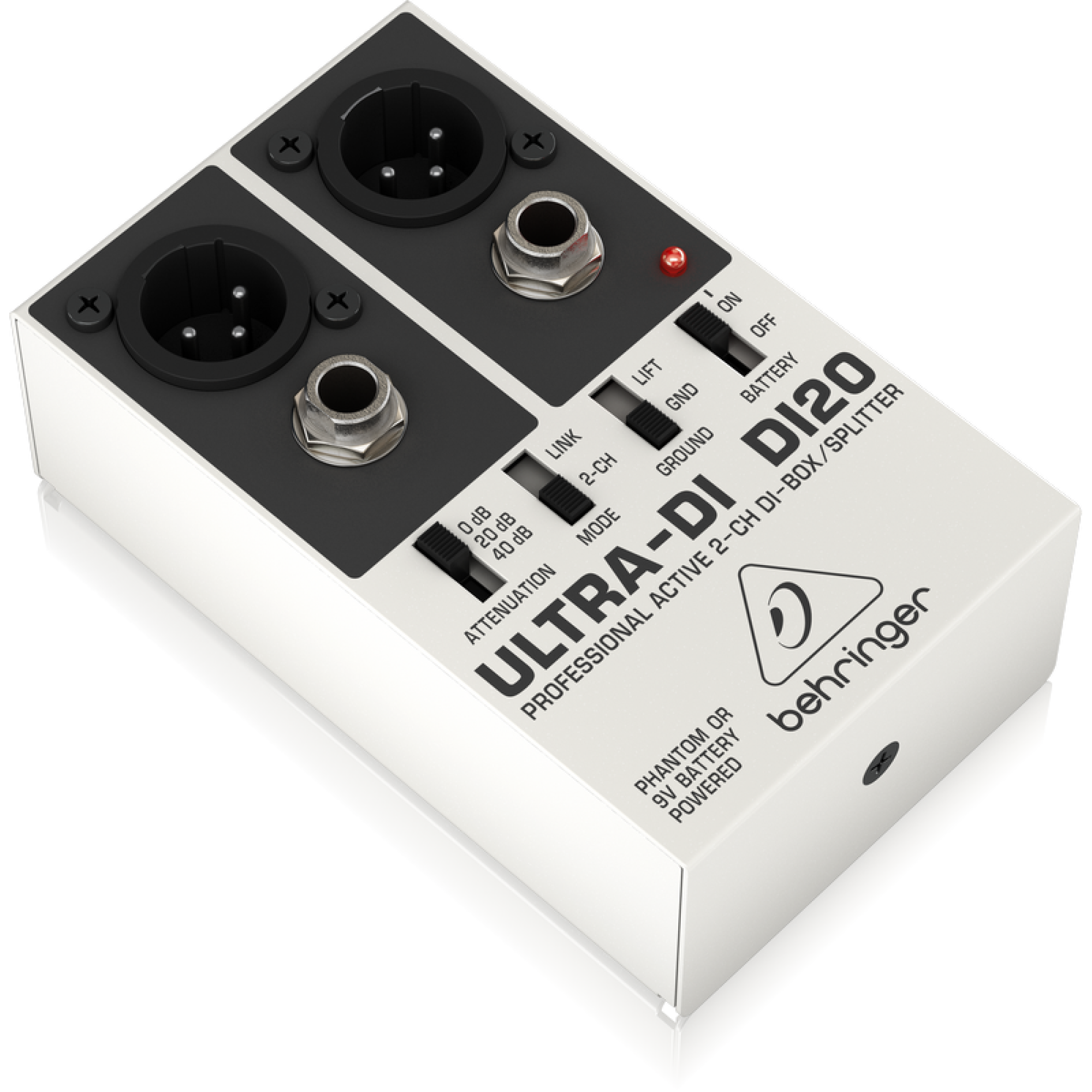 DI20 конвертує 2 окремих несиметричних сигнали, що надходять на 1/4"-вхід в 2 симетричних сигналах на виходах XLR. Режими роботи 2-channel і Link забезпечують гнучке використання як моно або 2-канальний DI-бокс, або спліттер. У режимі Link сигнал каналу 1 подається одночасно на обидва симетричних виходи XLR і несиметричний 1/4" роз'єм другого каналу. Завдяки 3-позиційному аттенюатору, допустимий рівень вхідного сигналу може досягати +48 дБн, в той час як перемикач Ground Lift усуває типові проблеми заземлення. Живлення здійснюється від батарейки (9 В) або фантомного живлення (48 В). Пристрій виконаний з надійних компонентів в компактному, виключно міцному корпусі.