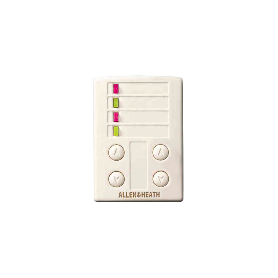 4 перемикача можуть бути призначені для управління рівнем вгору або вниз (вхід, вихід, перехресна точка або група), перемикачі вимкнення звуку, перемикачі полярності, вибір звукового монітора або попередній виклик. Передбачені місця для установки користувацьких клейких міток. Рекомендовані максимальні розміри наклейок: 6x26 мм і 26x9 мм.