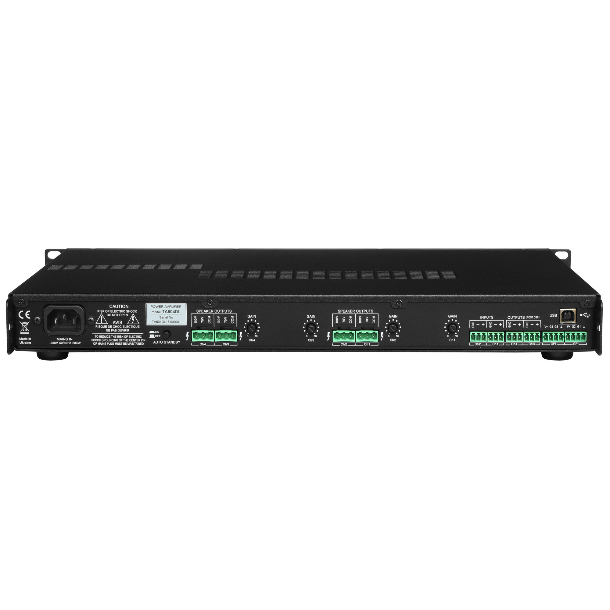 Park Audio TA604DL — це сучасний чотириканальний підсилювач класу D, який оснащений вбудованим DSP-процесором і призначений для роботи в системах з постійною напругою 70 В або 100 В. Завдяки вихідній потужності 4 х 150 Вт RMS (при 4 Ом), цей пристрій забезпечує стабільний сигнал з високою ефективністю.