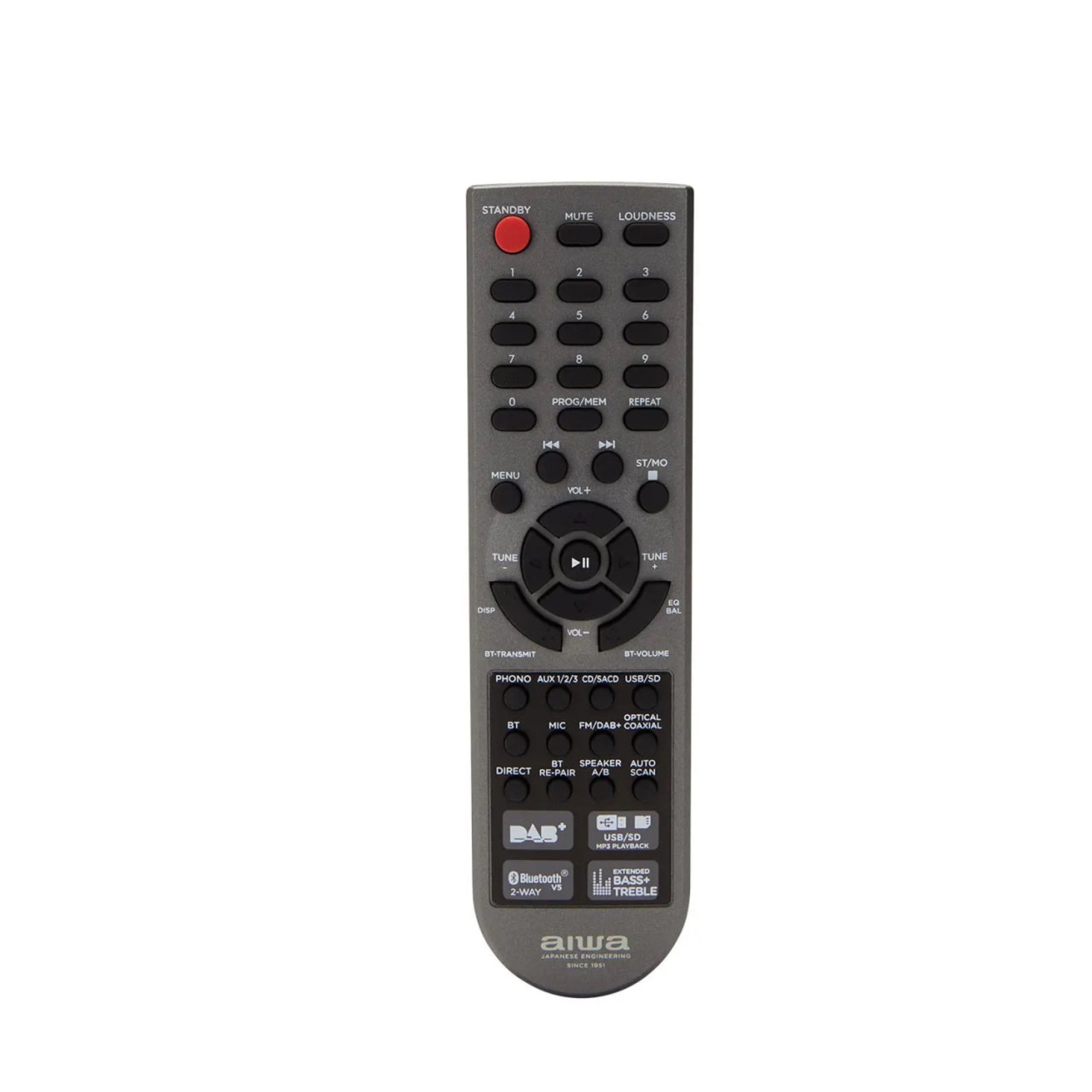 Керування підсилювачем AIWA AMR-200DAB можливе як за допомогою кнопок на передній панелі, так і з використанням пульта дистанційного керування, що забезпечує максимальний комфорт у використанні. Із регулюванням тембру за низькими та високими частотами, а також тонкомпенсацією для корекції характеру звучання на малій гучності, Ви завжди зможете налаштувати звук на свій смак.