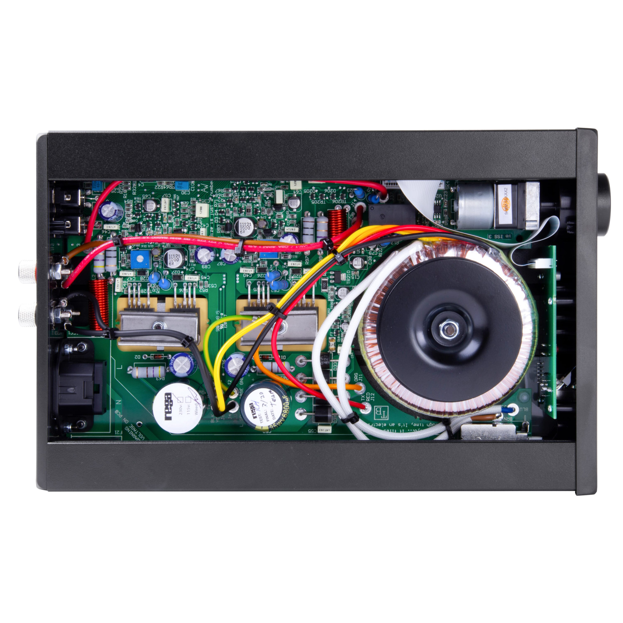 У io використовується той же підсилювач потужності та фонокоректор, що і в його старшому браті, який завоював безліч нагород – Brio. Мета io – забезпечити виняткову якість звучання у більш компактному та економічному корпусі. Схема класу A/B має загальну ДНК з рештою підсилювачів Rega, і, як завжди, при виборі компонентів було приділено велику увагу. Вихідні транзистори Sanken, потенціометри гучності Alps і лінійний блок живлення забезпечують вихідну потужність 30 Вт на канал при навантаженні 8 Ом. На передній панелі пристрою розташований вихід для навушників, що призначений для живлення стандартних навушників Hi-Fi. Він керується від каскаду підсилювача потужності пристрою через реле, що дозволяє уникнути деградації сигналу під час підключення навушників або відключення звуку. У комплект постачання входить міні-пульт дистанційного керування з оновленим дизайном.