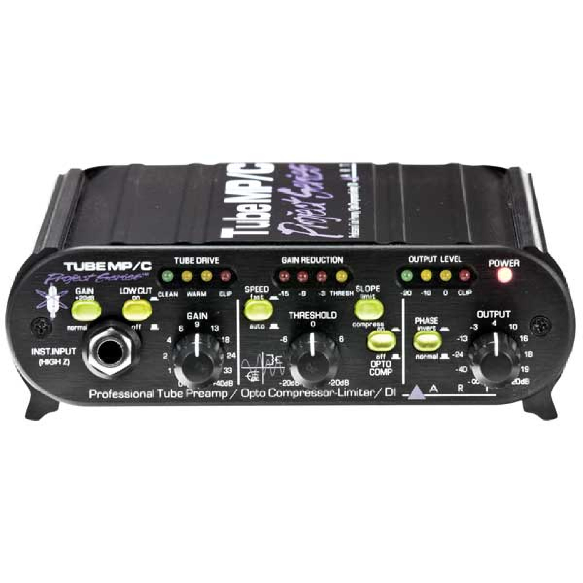 ART Tube MP/C також пропонує ряд додаткових функцій, таких як фантомне живлення +48В, перемикач фазового зсуву та налаштування часу відпускання. Надійний алюмінієвий корпус гарантує довговічність та захист пристрою під час використання.