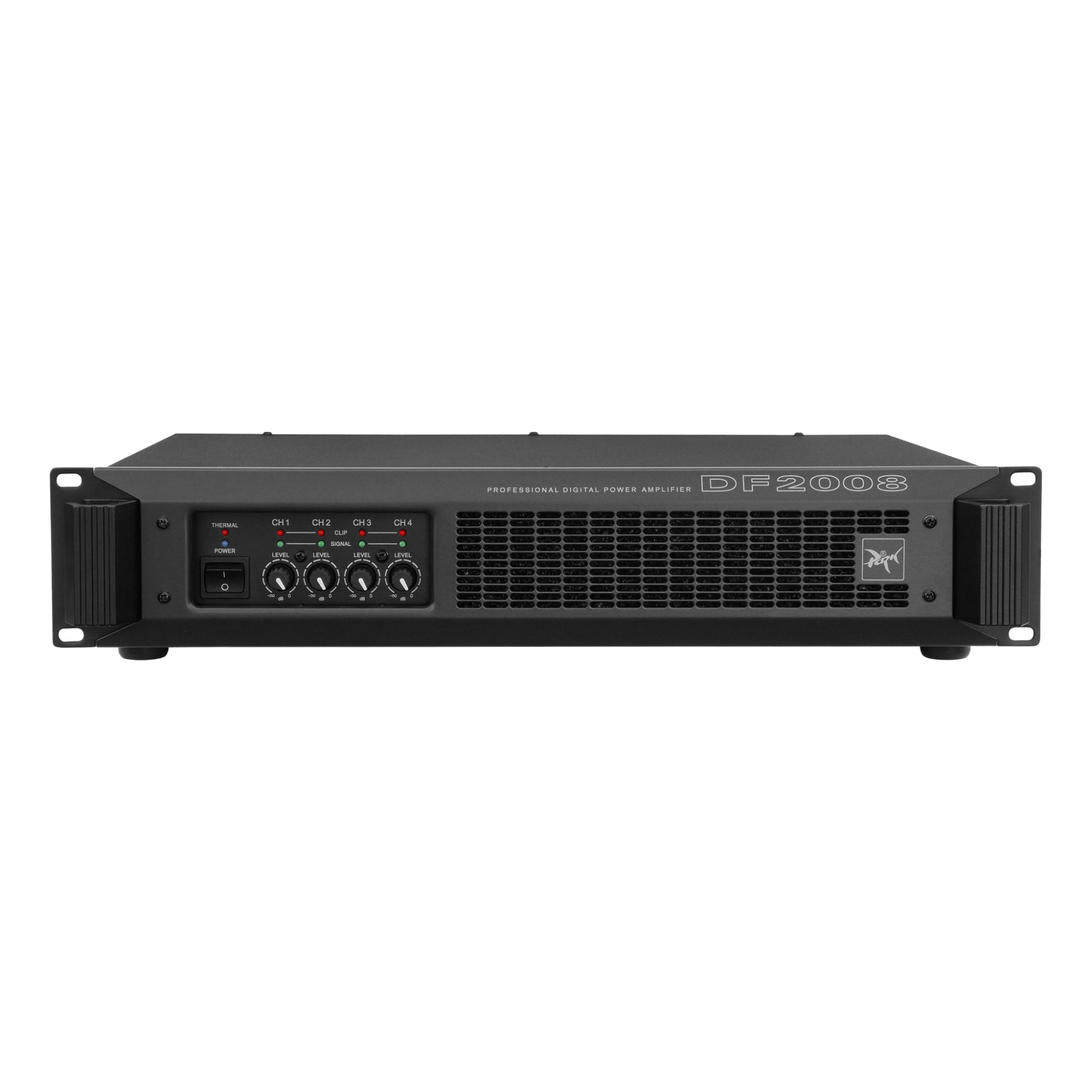 DF серія – це серія професійних ключових (цифрових) підсилювачів потужності, в яку входить ряд двоканальних і чотириканальних підсилювачів з вихідною потужністю від 4 х 350 Вт до 2 х 1600 Вт. Підсилювачі DF серії мають сучасну схемотехніку «D» класу з високою частотою комутації транзисторів вихідного каскаду та забезпечують якість звукового сигналу на рівні кращих аналогових підсилювачів, мають високий ККД та мале тепловиділення. Сучасне імпульсне джерело живлення не тільки суттєво знижує вагу, але й забезпечує надійну та безвідмовну роботу підсилювачів. Park Audio DF2008 DSP – це ключовий підсилювач для широкої сфери застосування з вбудованим DSP-процесором.