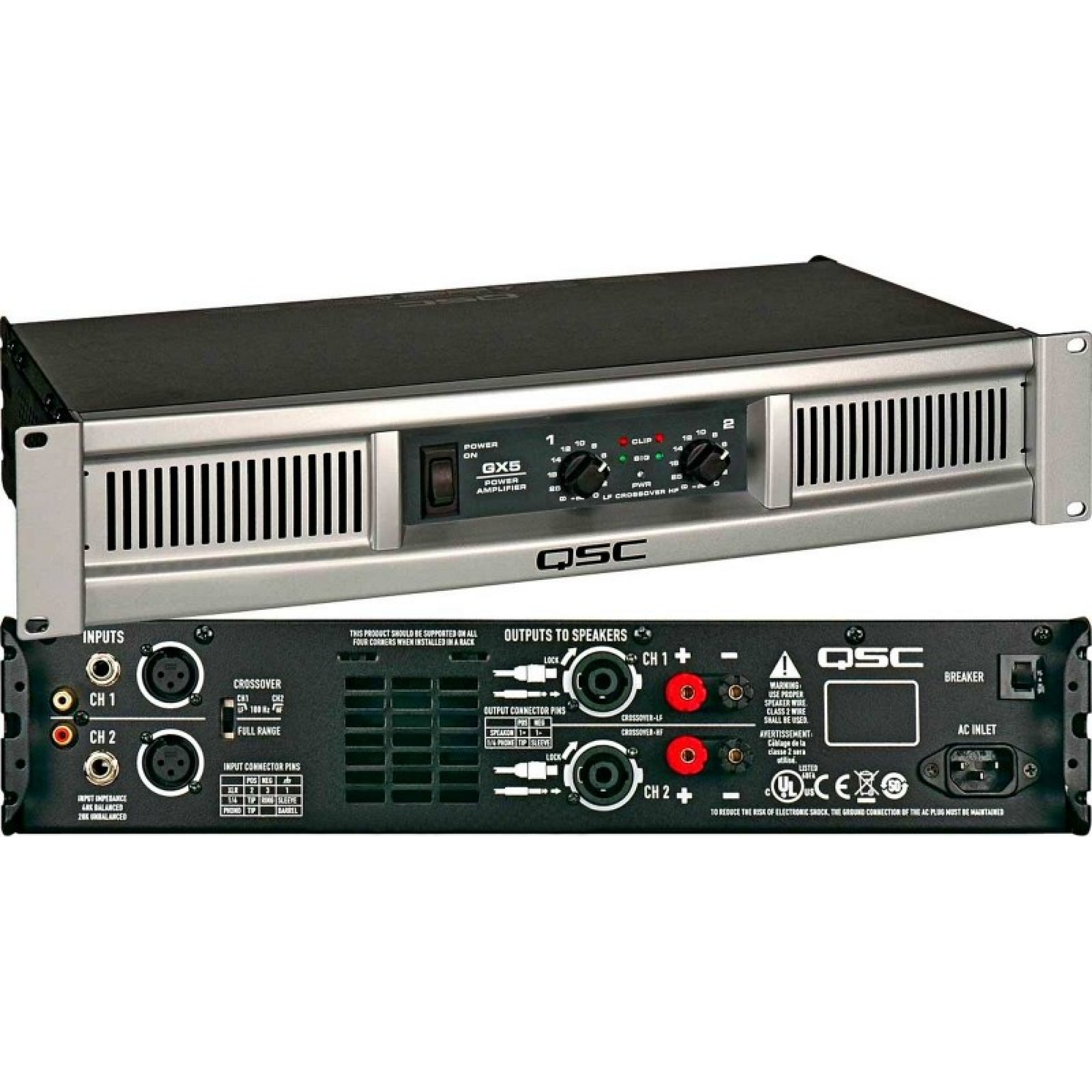 Стереопідсилювач QSC GX5 ідеально підходить для професійних артистів, яким потрібна максимальна продуктивність і портативність при обмеженому бюджеті. Конструктори QSC на чолі з Петом Квілтер оптимізували вихідну потужність і зовнішній вигляд GX5, знизивши при цьому вартість і масу вихідних матеріалів. Підсилювач потужності GX5 забезпечує повноцінну роботу акустичних систем потужністю 500 Вт (за програмою) та подає максимально можливу потужність на навантаження 4 та 8 Ом. Власники популярних 4-омних акустичних систем (двохвуферних, двосмугових моделей та багатьох сабвуферів) знайдуть потужність GX5 в 700 Вт (4 Ом) ідеальним варіантом. У підсилювачі потужності GX5 використовується система класу H, заснована на ключових елементах серії PLX, що дозволяє майже вдвічі збільшити потужність за тих же габаритів і маси. Конструкторський досвід QSC дозволяє вихідним пристроям переходити від малопотужних до потужних шин менш ніж за мільйонну секунду, гарантуючи, що вихідна потужність завжди знаходиться саме там, де потрібно, без зайвих втрат.