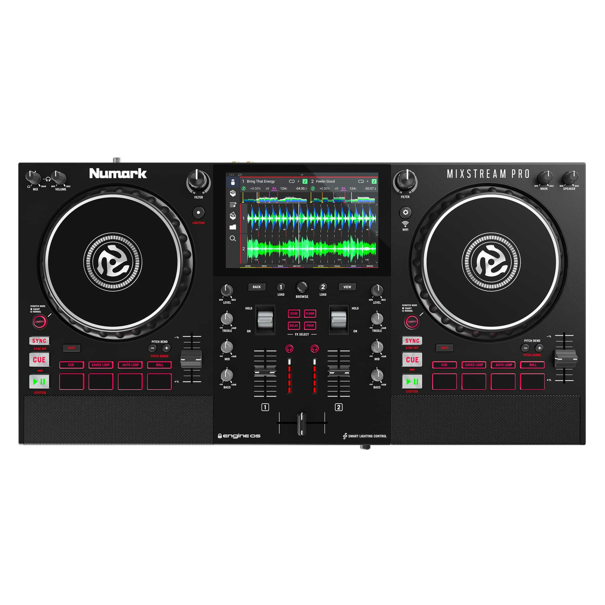 Скретчінг за допомогою великих 6-дюймових сенсорних коліс – це просте заняття завдяки функції Smart Scratch, яка гарантує, що музика завжди залишається в такті після додавання скретчу в мікс. 8 двошарових педів Performance Pads мають 4 режими роботи (Cue, Saved Loop, Auto Loop, Roll), надаючи безмежні можливості для живого мікшування та максимальної творчої музичної свободи. Крім того, оскільки Mixstream Pro використовує можливості Engine DJ, діджеї отримують прямий доступ до набору передових функцій професійного рівня, що постійно розширюється.