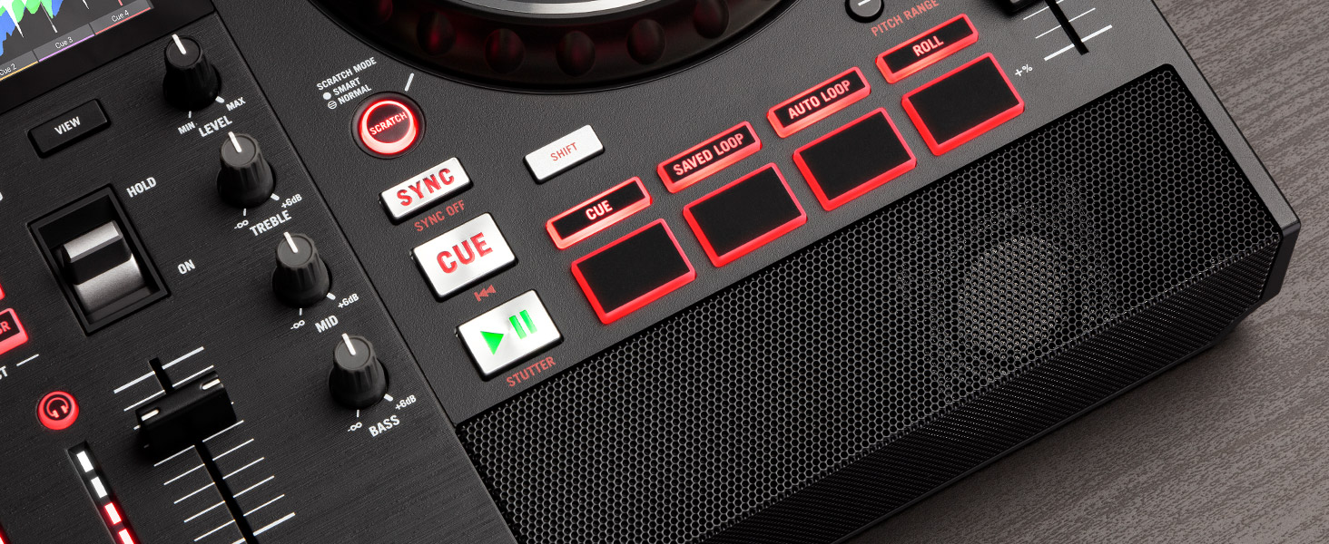 Інтуїтивно зрозуміле компонування та 7-дюймовий сенсорний екран високої чіткості дозволяють переглядати, завантажувати та відтворювати музику як ніколи раніше. 4 вбудовані ефекти (Echo, Flanger, Delay і Phaser) ідеально відповідають ритму, коли вони запускаються за допомогою інтерактивних тумблерів. Великі ручки фільтра та 3-смуговий еквалайзер надають ще більшого пожвавлення, забезпечуючи практичний контроль над низькими, середніми та високими частотами для створення ефектних міксів, поєднань та переходів.