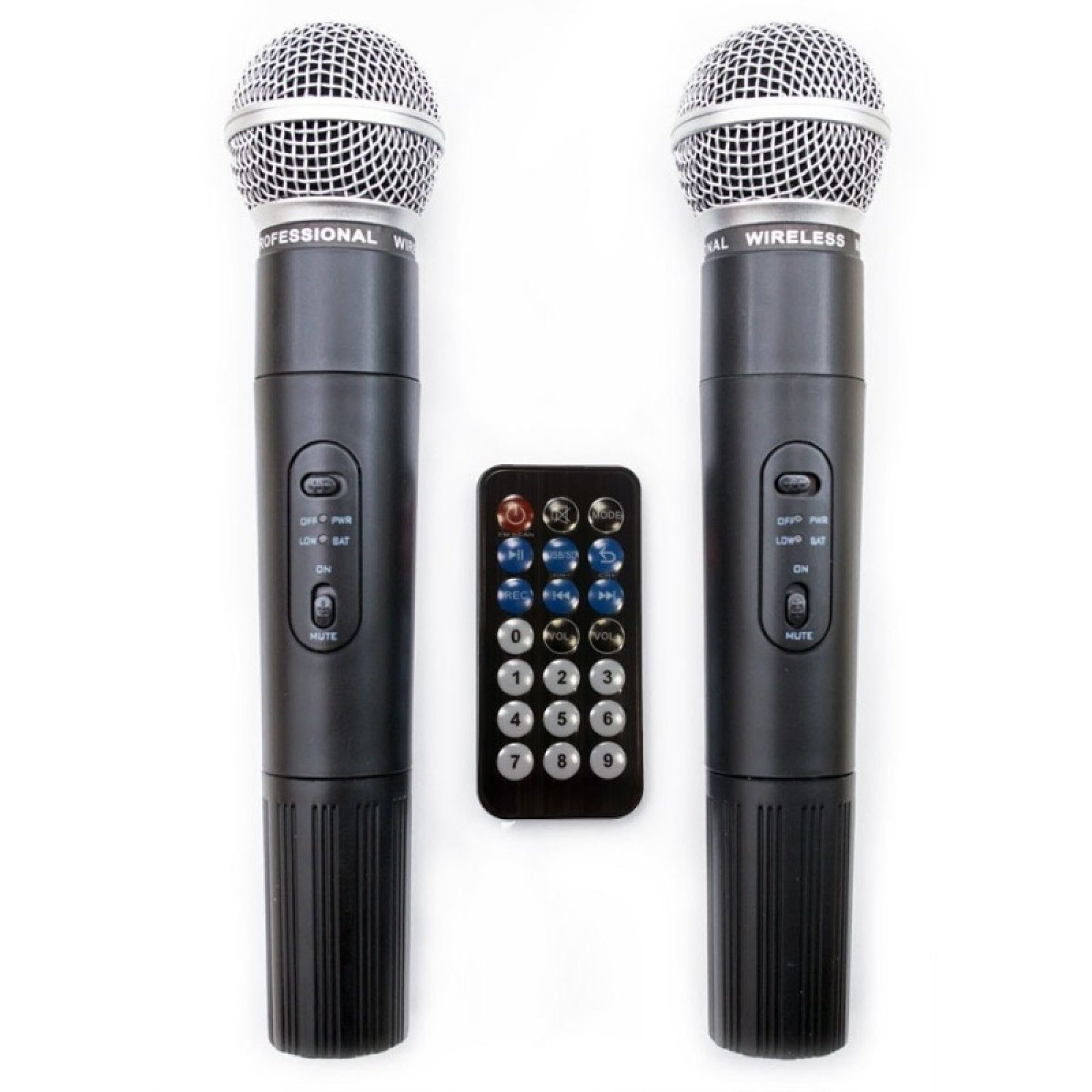 - Додаткові особливості: Bluetooth, MP3, Кард-рідер, Порт USB, Вбудований гелевий акумулятор 12 В 7.4 Ач, 2 ручних радіомікрофона VHF, Пульт ДУ