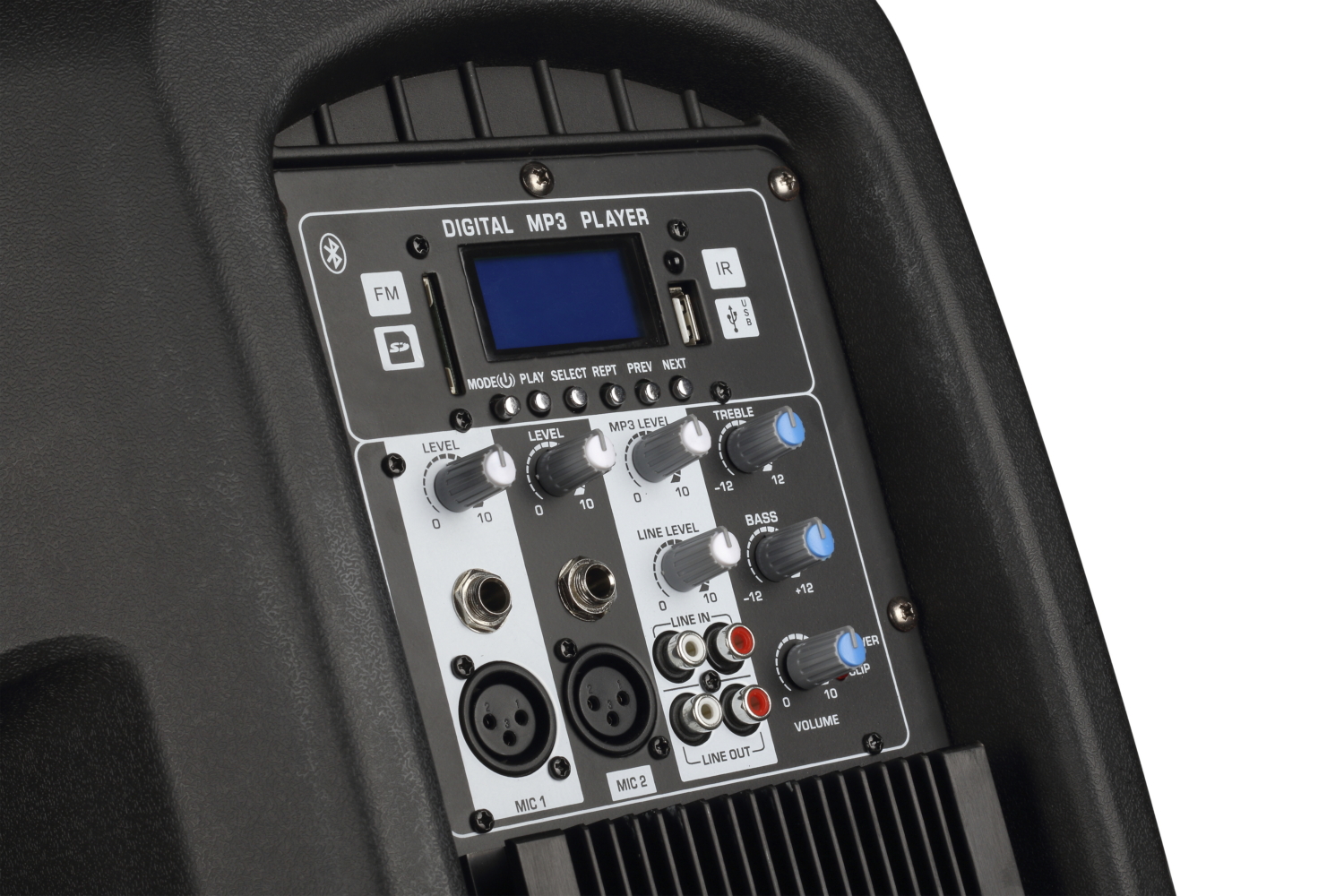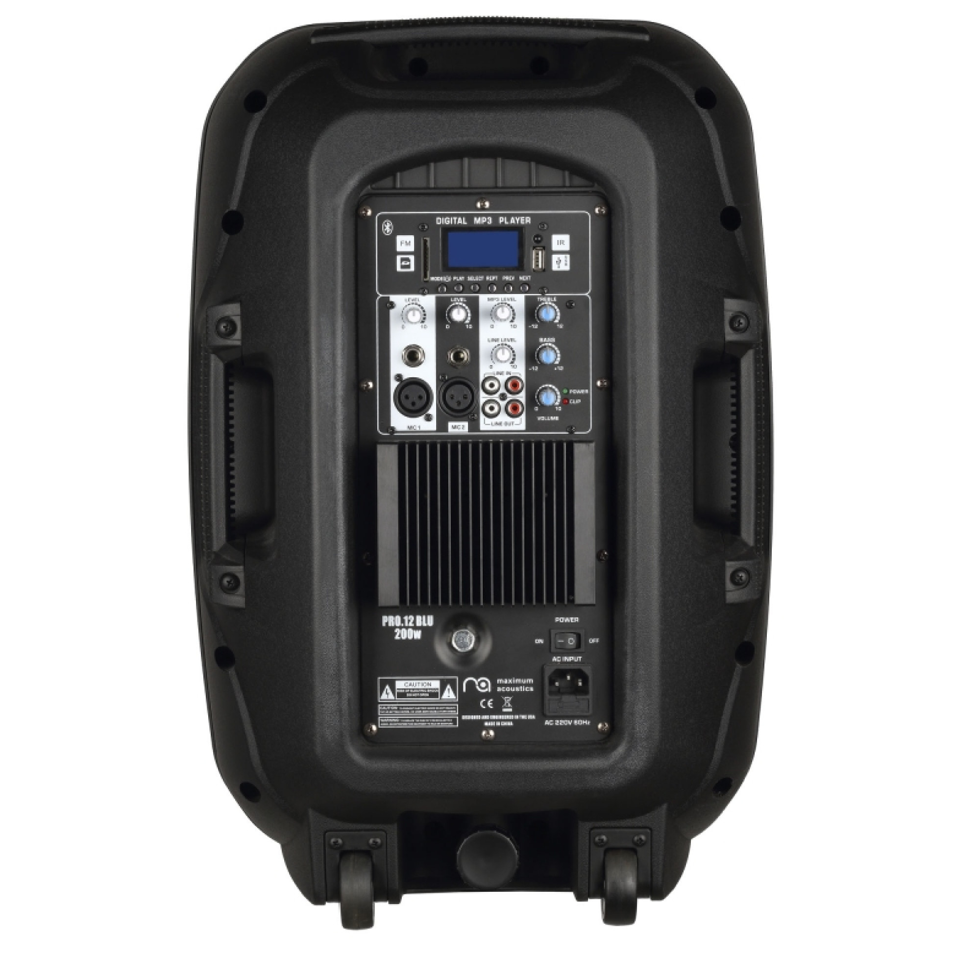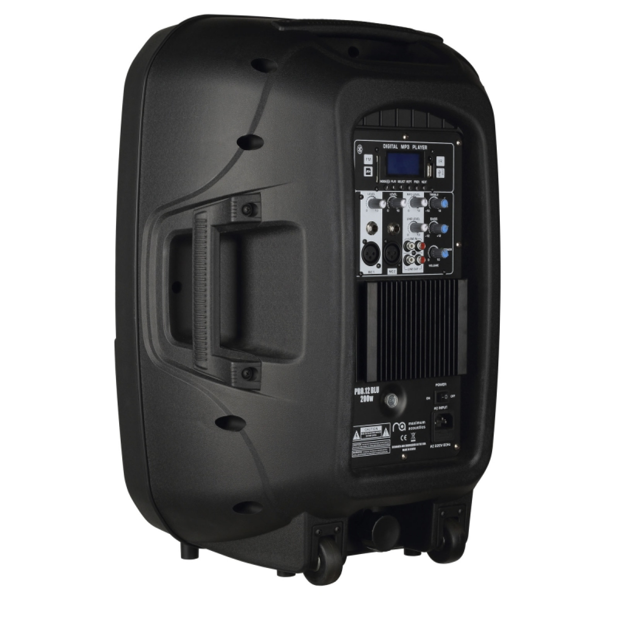 2-смугова активна акустична система, яка має на борту інтегрований MP3 плеєр, який відтворює музику з карт пам'яті SD/MMC і USB пристроїв. Акустична система оснащена Bluetooth і Інфрачервоним портом (IR). Плеєр має інтуїтивно зрозуміле сенсорне управління на задній панелі і дисплей, що відображає основну інформацію, а також засоби керування (Mode, Play, Select, Rept, Prev, Next). Номінальна потужність 200 Вт. Акустична система обладнана підсилювачем АВ класу та пультом дистанційного керування. Динамік: 12" об'ємом 1,5 л з катушкою 2,5". Титановий ВЧ-компресійний драйвер - 34мм.