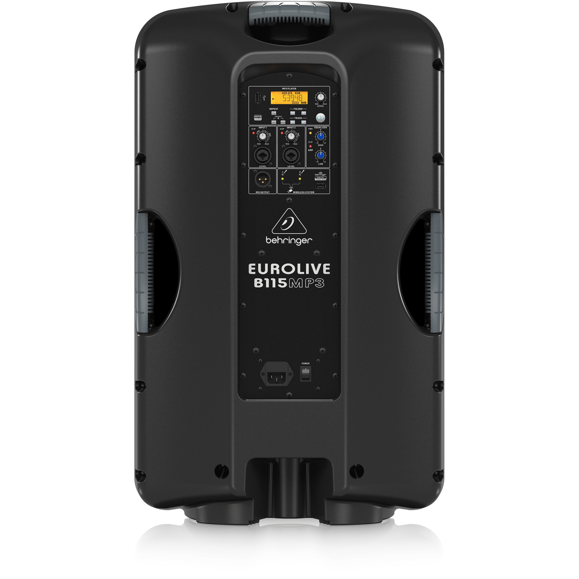 Behringer B115MP3 професійна активна акустична система призначена стати легендою поруч з іншими EUROLIVE моделями. Це легша (17,7 кг), а також більш потужна система. Однією з кращих характеристик є вбудований МР3 плеєр. 8-кнопковий інтерфейс і багатофункціональна рідкокристалічна панель дозволяють миттєво проглядати треки, переміщати їх, повторювати або програвати окремо. Цей повнофункціональний МР3 плеєр може впоратися з усім. Якщо Вам потрібно додати бездротові мікрофони, немає нічого простішого, просто включите приймач в спеціальний порт на задній панелі, і Ви маєте повний доступ до двох каналів бездротового з'єднання.