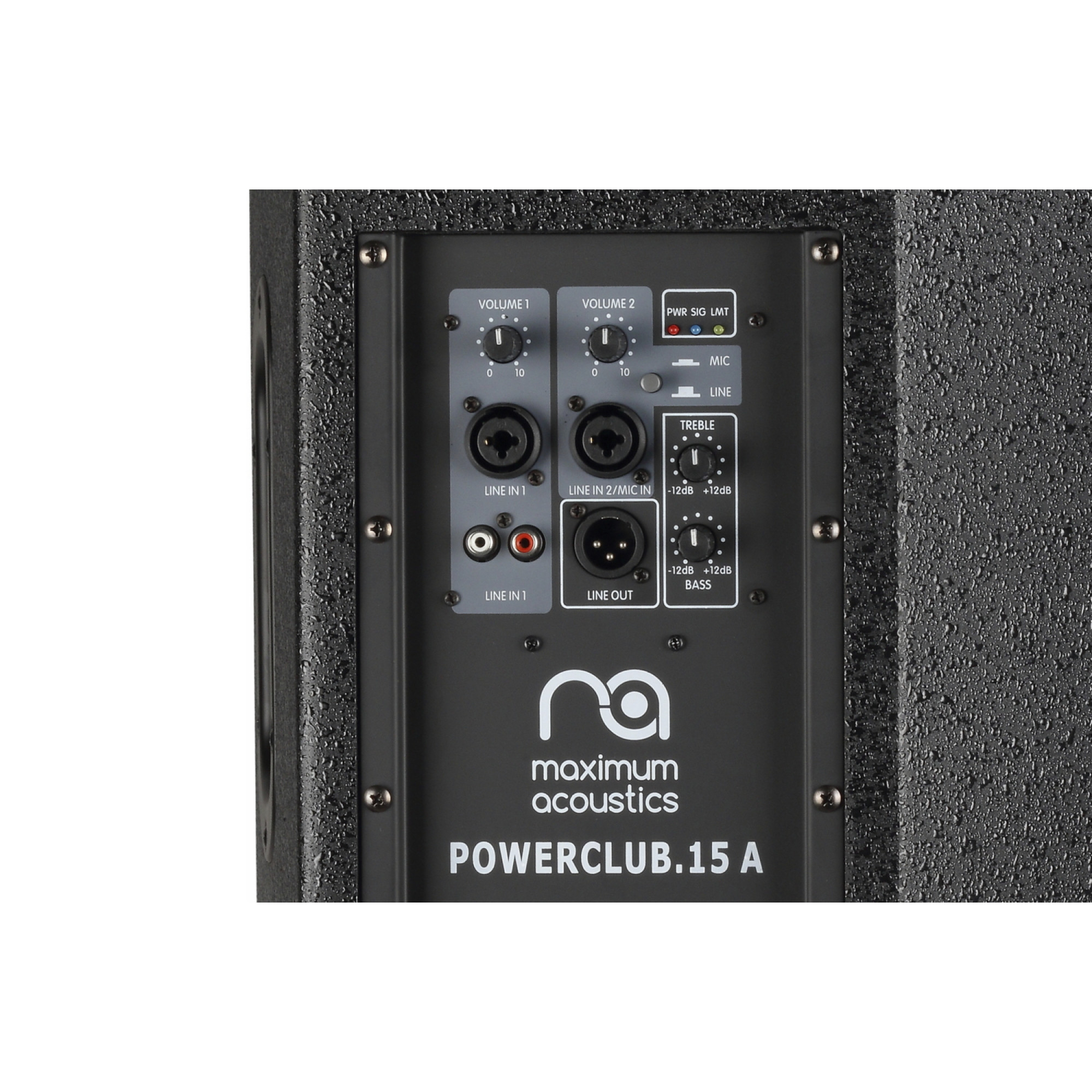 Maximum Acoustics PowerClub.15A – це активна 2-смугова акустична система, яка оснащена потужним підсилювачем класу D, що дозволяє досягти високих показників гучності та чистоти звучання при досить невеликих компактних розмірах.