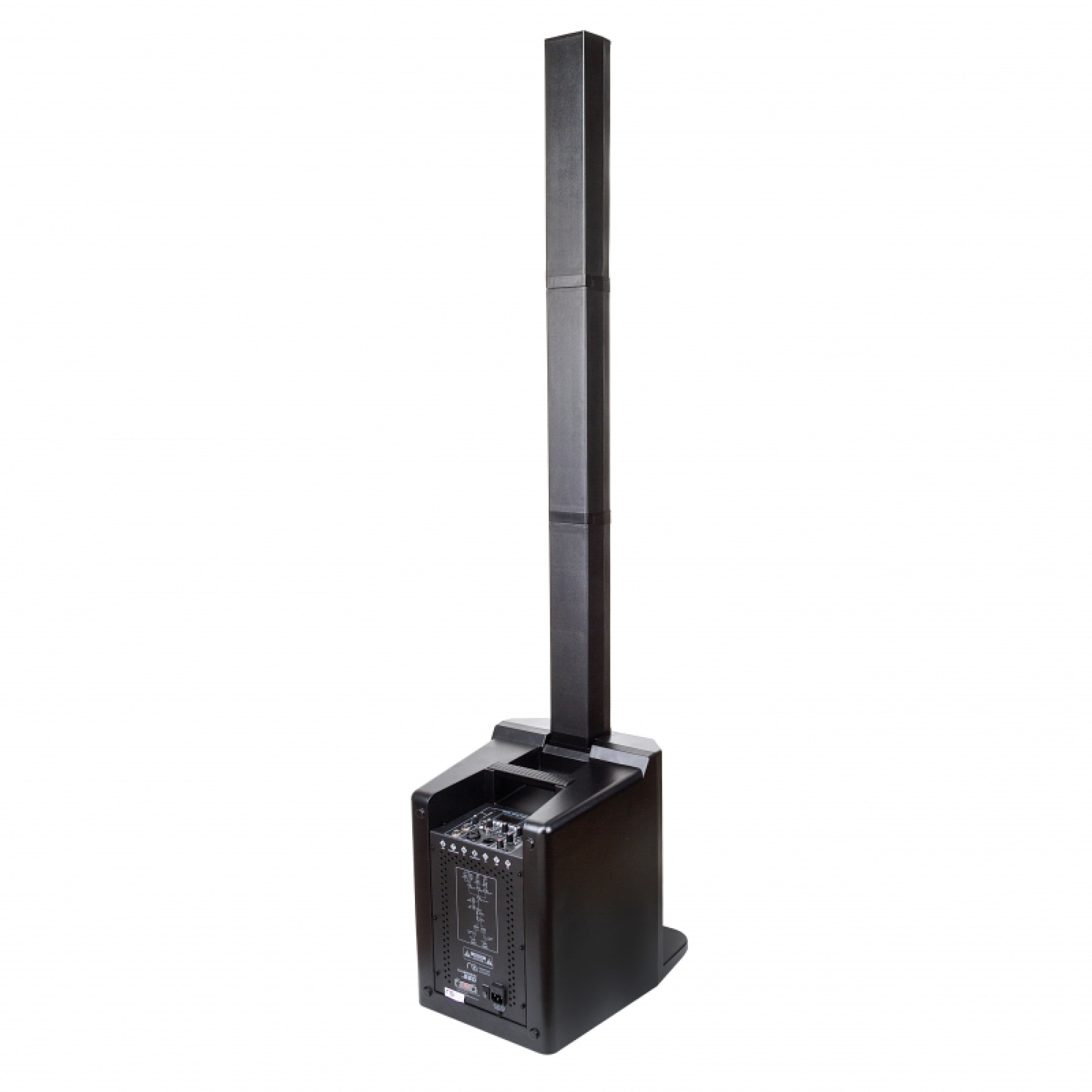 Акустична система обладнана потужним підсилювачем D-класу з номінальною потужністю 250+100 Вт. Сабвуфер оснащений 10" динаміком з котушкою 2" та магнітом в 40 унцій. Сателіт розташований в корпусі у вигляді колони, в якій встановлені чотири 3” високочастотних драйвери. Висота акустичної системи становить 169 см, висота колонки без сателіта – 42 см.
