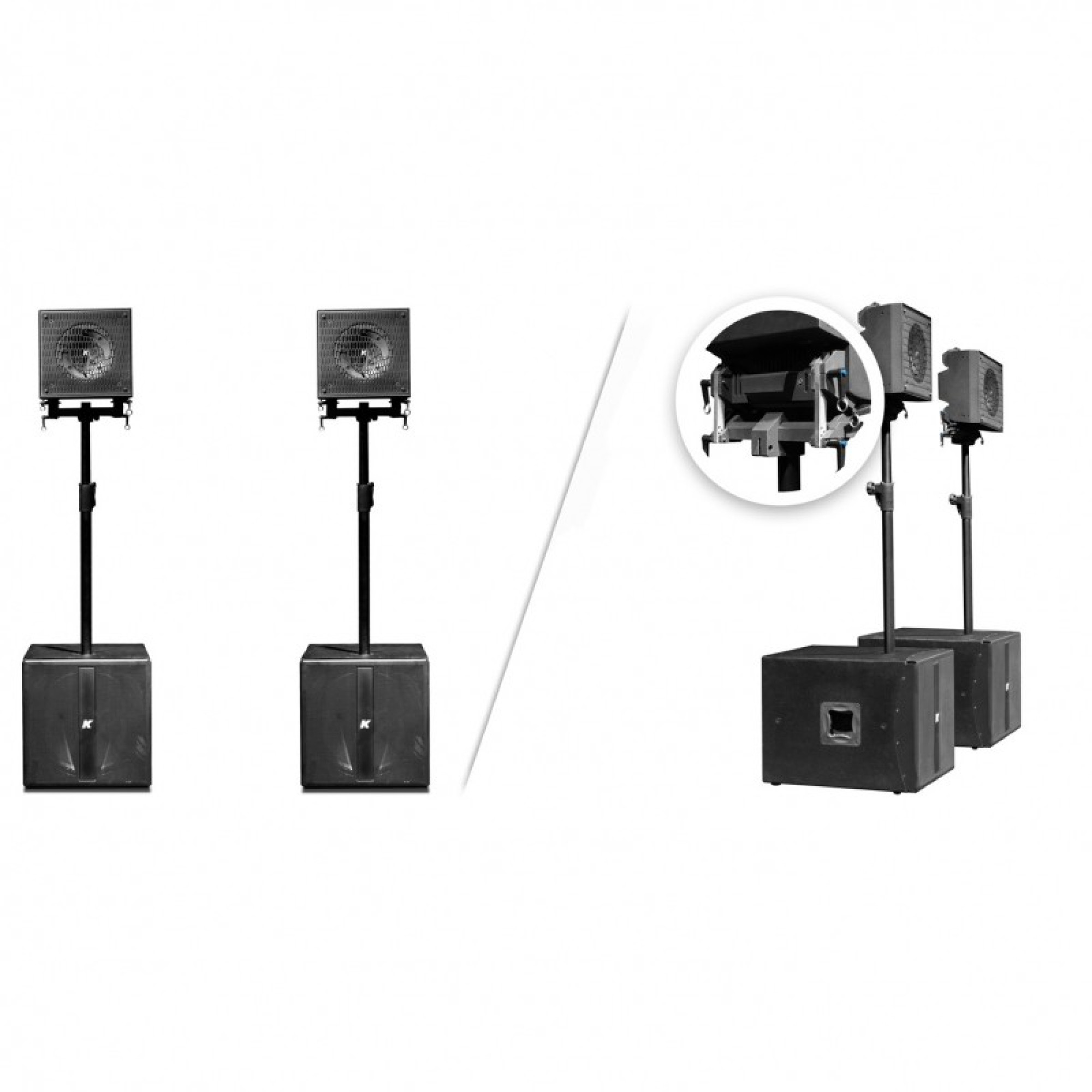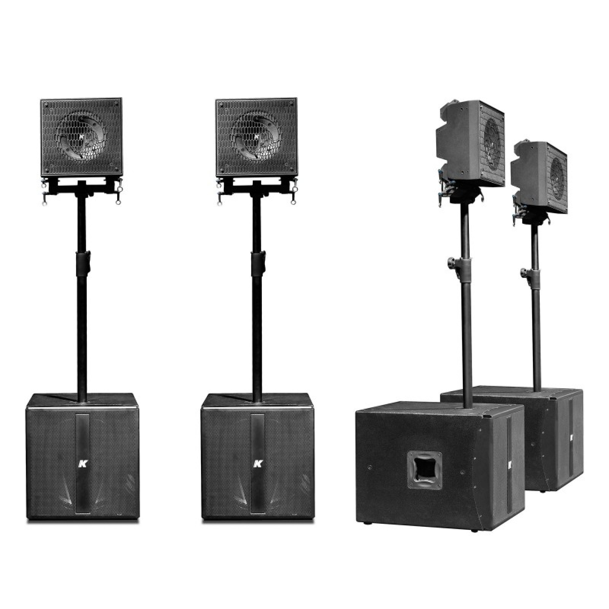 Стереосистема KRX202 є найменшою з лінійки KRX і складається з одного KX12 (800 Вт СЧ + 200 Вт ВЧ, 12"+2") який стоїть на телескопічній стійці на сабвуфері KMT18 (18" 2х1000 Вт) з кожного боку. Система ідеально підійде для : DJ-їв, клубів де потрібен великий звуковий тиск, і якісний звук!