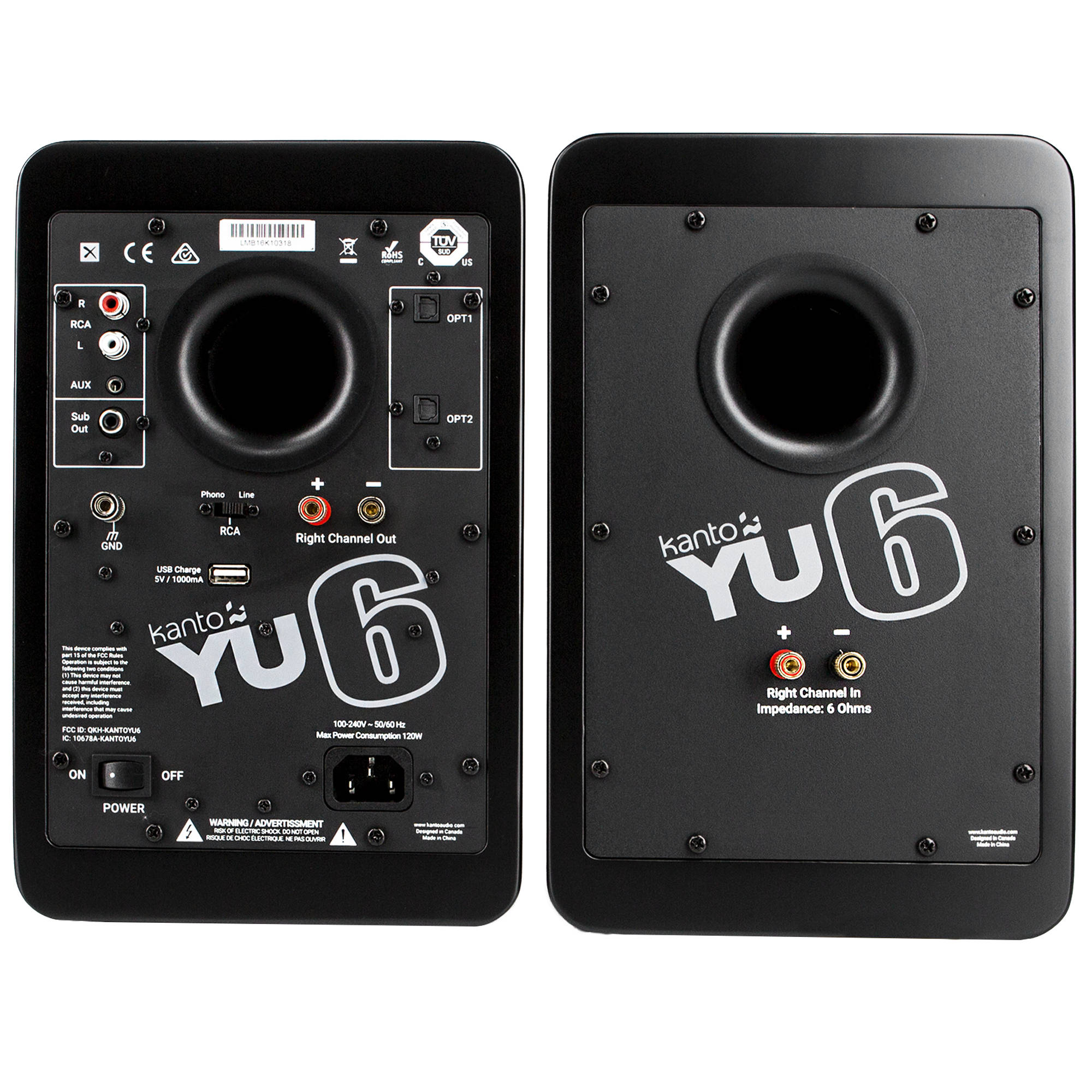 Задовольніть свою тягу до потужного, повнозвучного звучання з Kanto YU6. Озброєна грізним підсилювачем класу D, що видає 200 Вт пікової потужності, YU6 змусить Вас задуматися про те, що таке гучно. 5,25-дюймові динаміки Kevlar і 1-дюймові твітери з шовковим куполом забезпечують детальне звучання на кожному квадратному дюймі житлового простору, викликаючи емоції, які можна виразити лише усмішкою від вуха до вуха. Вони оснащені входами RCA, 1/8" Mini Jack і двома оптичними входами TOSLINK, а також вбудованим Bluetooth для бездротового підключення. Вхід RCA може функціонувати як лінійний або фоно вхід за допомогою встановленого на задній панелі перемикача, а для підключення до програвача є клема заземлення. Також вбудований порт USB на 5 В для підзарядки телефону під час відтворення. Без зусиль наповніть кімнату багатим й просторим звучанням. Підключіть вініловий програвач за допомогою вбудованого фоно-підсилювача або відкиньтесь на спинку крісла і слухайте свій ретельно підібраний плейлист через Bluetooth 4.0 з Qualcomm aptX. Кришталево чистий, детальний звук для всіх. У комплект входить ІЧ-пульт дистанційного керування, а також акустичний кабель та 3,5-мм кабель AUX для миттєвого підключення.