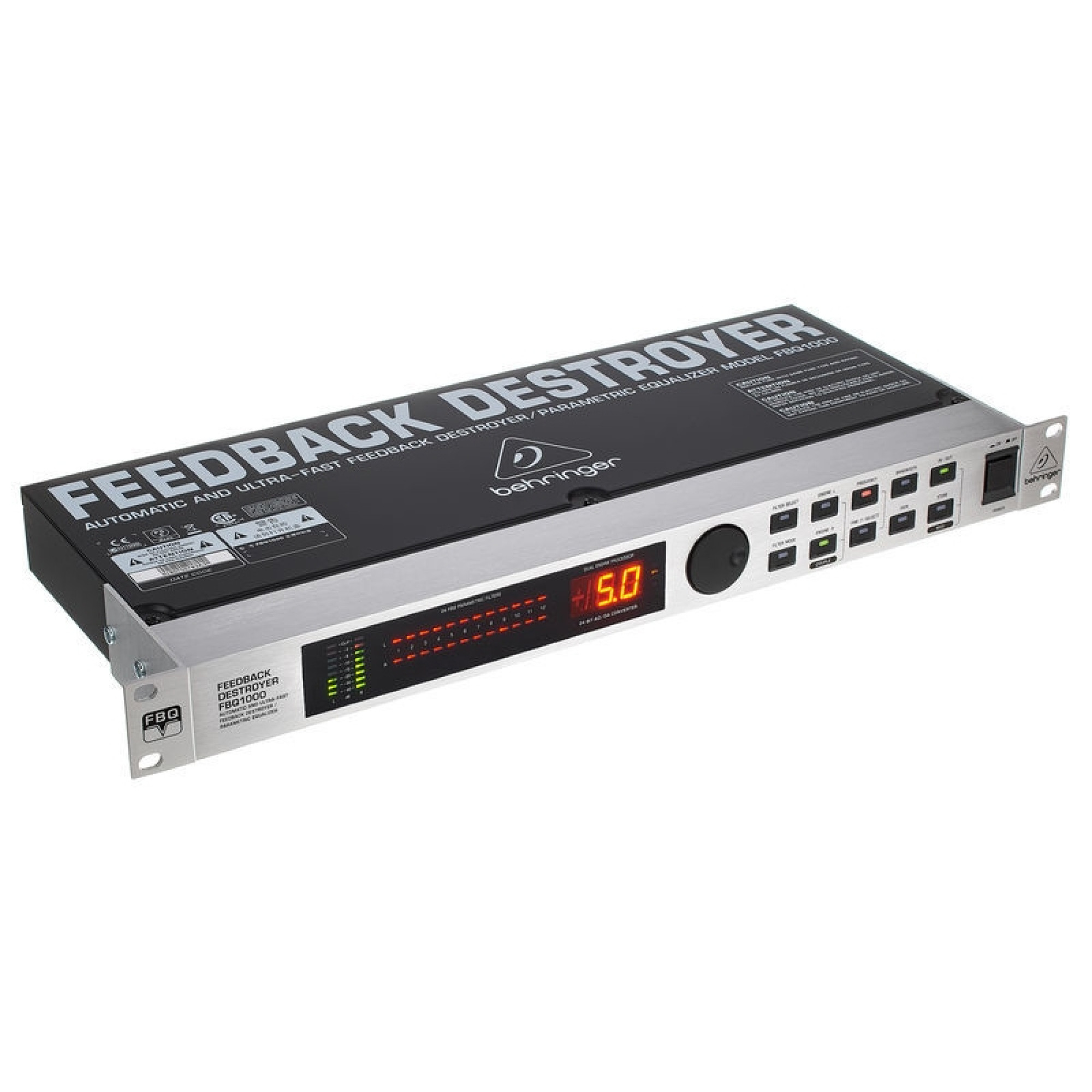 FBQ1000 - це придушувач акустичного зворотного зв'язку і параметричний еквалайзер в одному корпусі. Його основна функція - гасіння резонансних частот, які каскадно посилюються даною акустичною системою, а також виправлення «провалів» і інших особливостей амплітудно-частотної характеристики динаміків. FBQ1000 - двохканальний пристрій, що підтримує велику кількість автоматичних режимів, завдяки чому його зручно використовувати для роботи з живим звуком, коли немає часу возитися з мікшерними налаштуваннями сигналу для кожного каналу окремо.