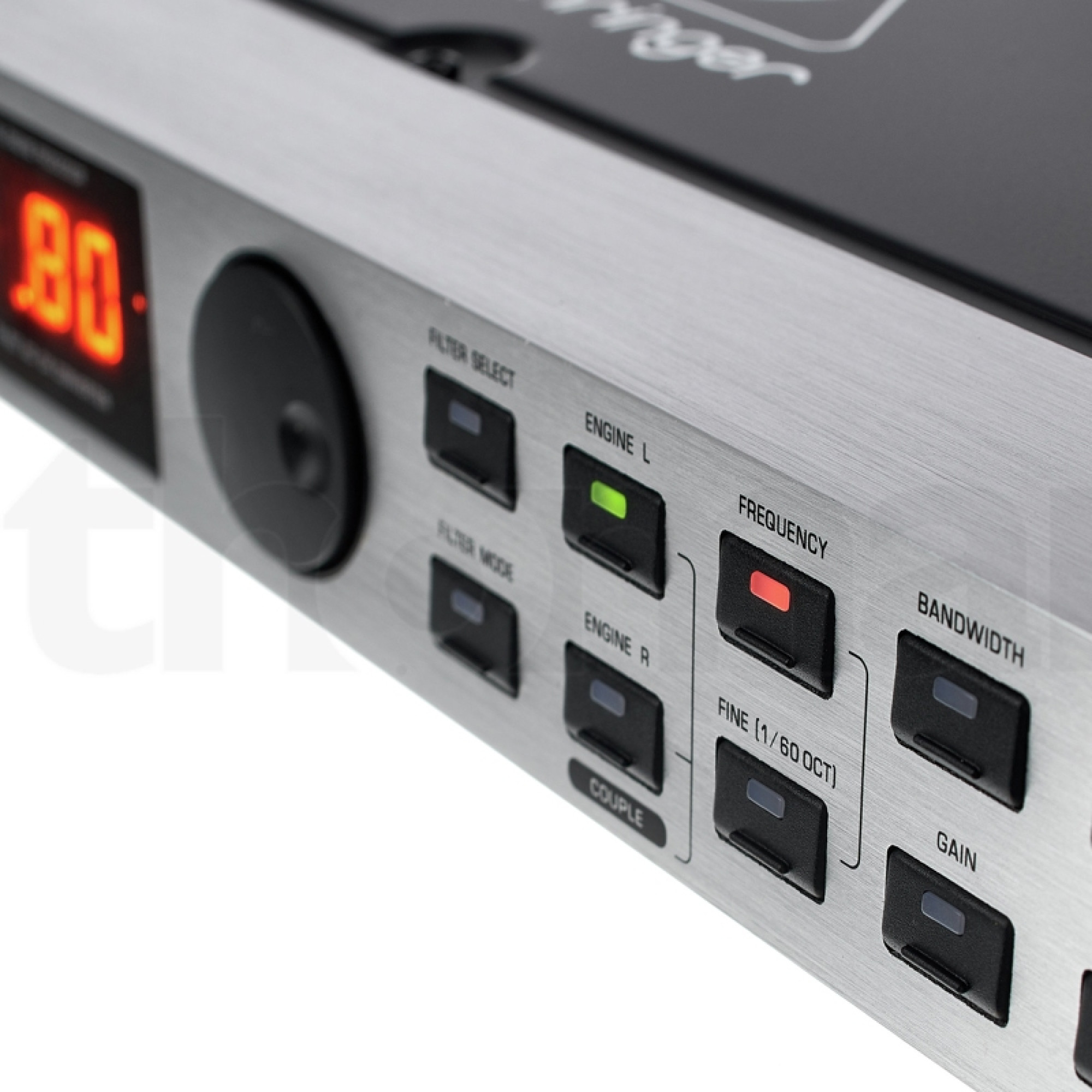 На панелі управління є кнопки вибору пресетів, режимів роботи еквалайзера і придушувача зворотного зв'язку, рівня придушування, вибору частоти та інших параметрів, забезпечені підсвічуванням, плавний поворотний контролер для ручного виставлення параметрів і трьохзнаковий LED-дисплей для показу поточних налаштувань. Також є окремі шкали для правого і лівого каналів - вхідного і вихідного рівнів, доповнені індикаторами кліпування, та індикаторами статусу фільтрів.