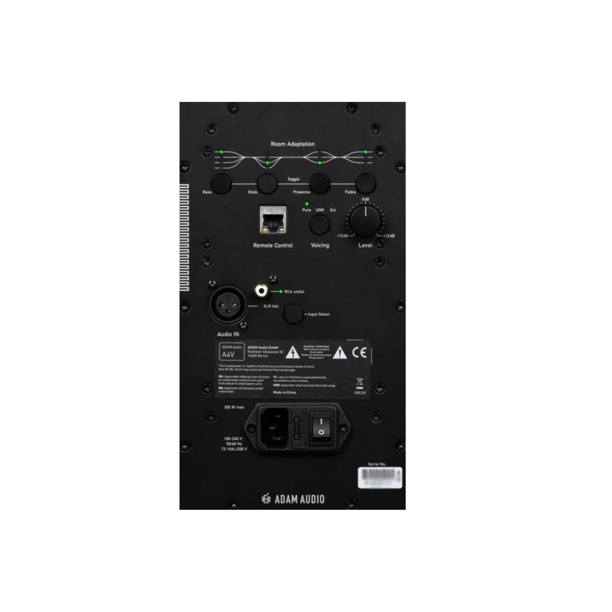 A4V призначений для невеликих студійних просторів, коротких відстаней прослуховування та багатоканальних конфігурацій, що створюють реалістичне звучання. Він забезпечує точний, насичений звук у компактному форм-факторі. Із частотним діапазоном від 52 Гц до 45 кГц, A4V підходить для широкого спектру аудіо застосувань – від виробництва подкастів до мікшування струнних квартетів – і добре вписується у 3D налаштування.