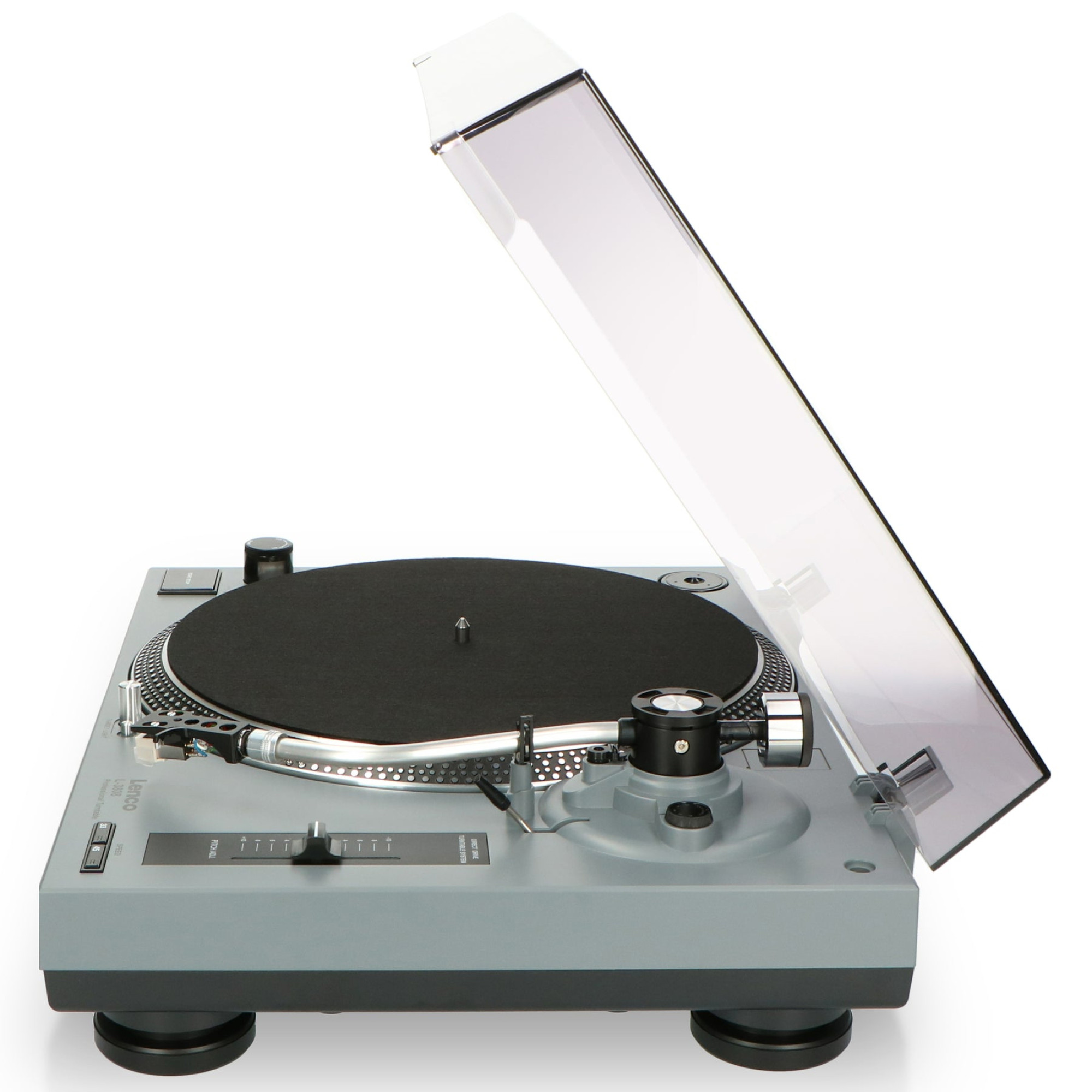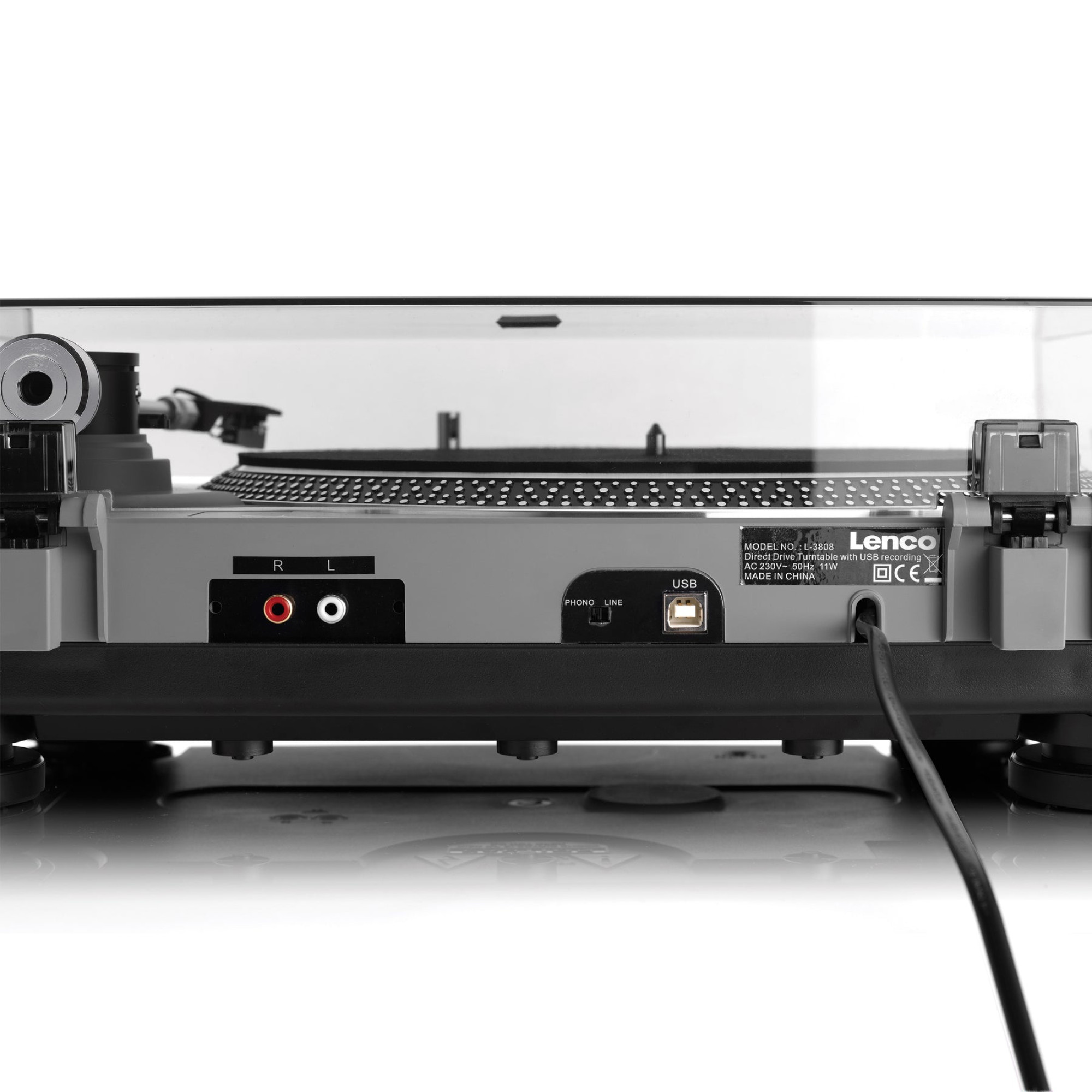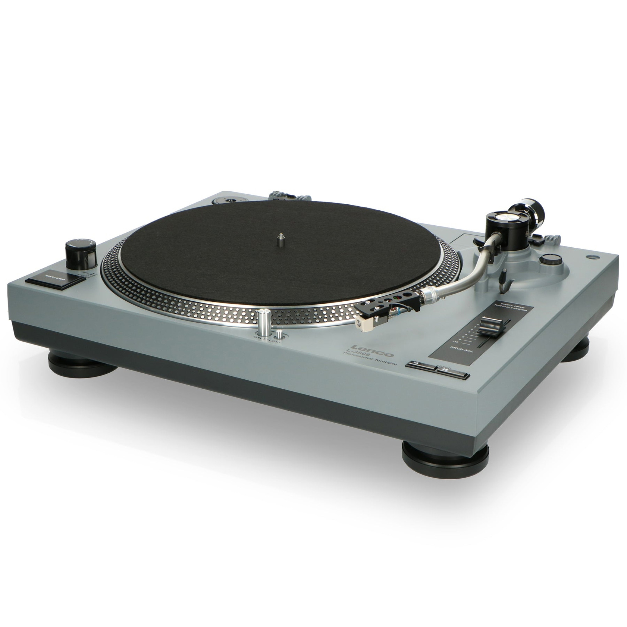 Lenco L-3808 – це високоякісний професійний програвач з прямим приводом, що особливо підходить для діджеїв. Прямий привід гарантує негайний запуск, який також називають "швидким стартом". Програвач оснащений підсвіткою для оптимальної зручності роботи та стробоскопом. Легко регулюйте швидкість програвача за допомогою фейдера зі змінним кроком. Завдяки вбудованому фоно-підсилювачу, Ви можете підключити Lenco L-3808 безпосередньо до мікшера або стереосистеми. Ви можете легко змінити швидкість обертання з 33 на 45 обертів на хвилину для відтворення більш старих платівок (адаптер йде в комплекті).
