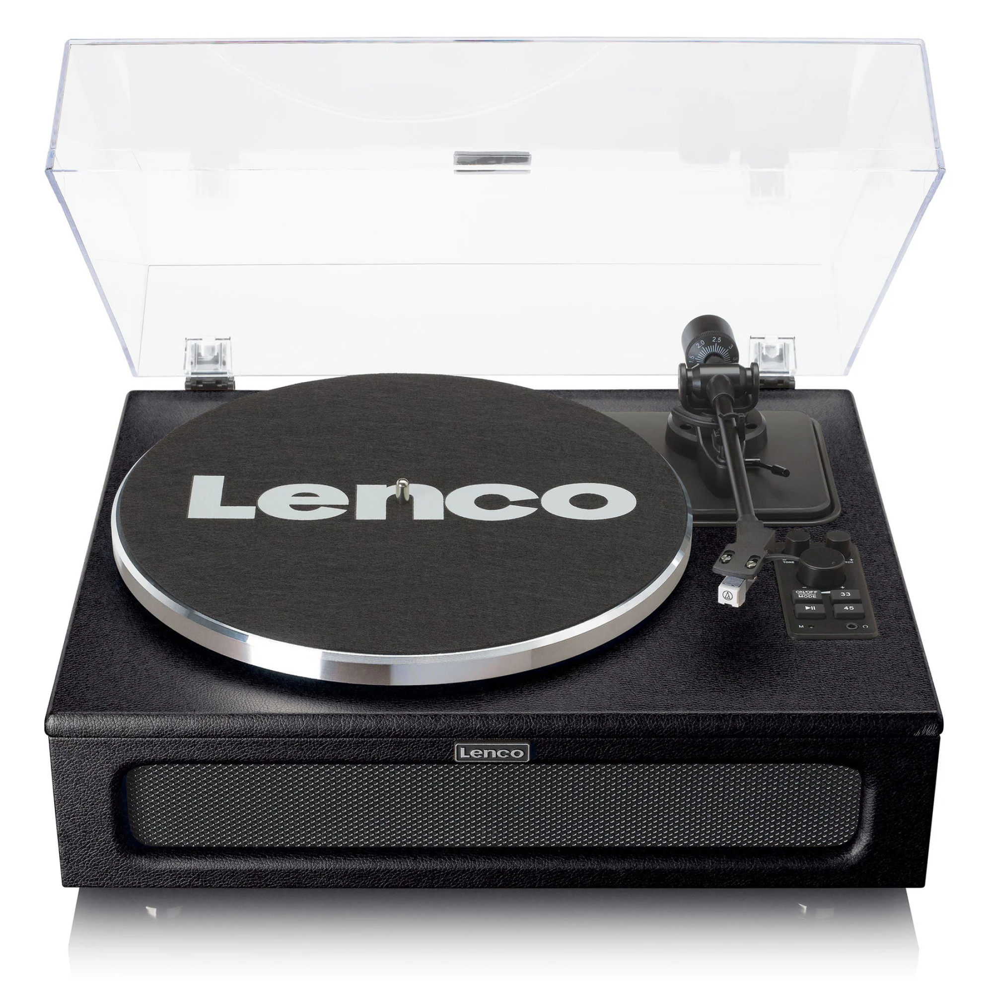 Регульована швидкість дозволяє вибирати між 33 та 45 обертами на хвилину, і Ви можете легко відтворювати сингли та альбоми. LS-430 – це програвач з ремінним приводом, оснащений високоякісним картриджем Audio-Technica. Завдяки цьому якість звуку знаходиться на висоті, а платівки довше залишаються у хорошому стані. За допомогою кнопки "старт-стоп" Ви можете будь-якої миті зупинити платівку і запустити її з того місця, на якому зупинилося відтворення. Цей програвач також оснащений функцією пітч-контроль, яка дозволяє вручну регулювати швидкість відтворення. Не кажучи вже про регулювання тембру, що дозволяє налаштовувати високі та низькі тони. Пластикова захисна кришка гарантує, що Ваш програвач не зникне під шаром пилу. Lenco LS-430 оброблений красивою штучною шкірою і доступний в чорному або коричневому кольорі.