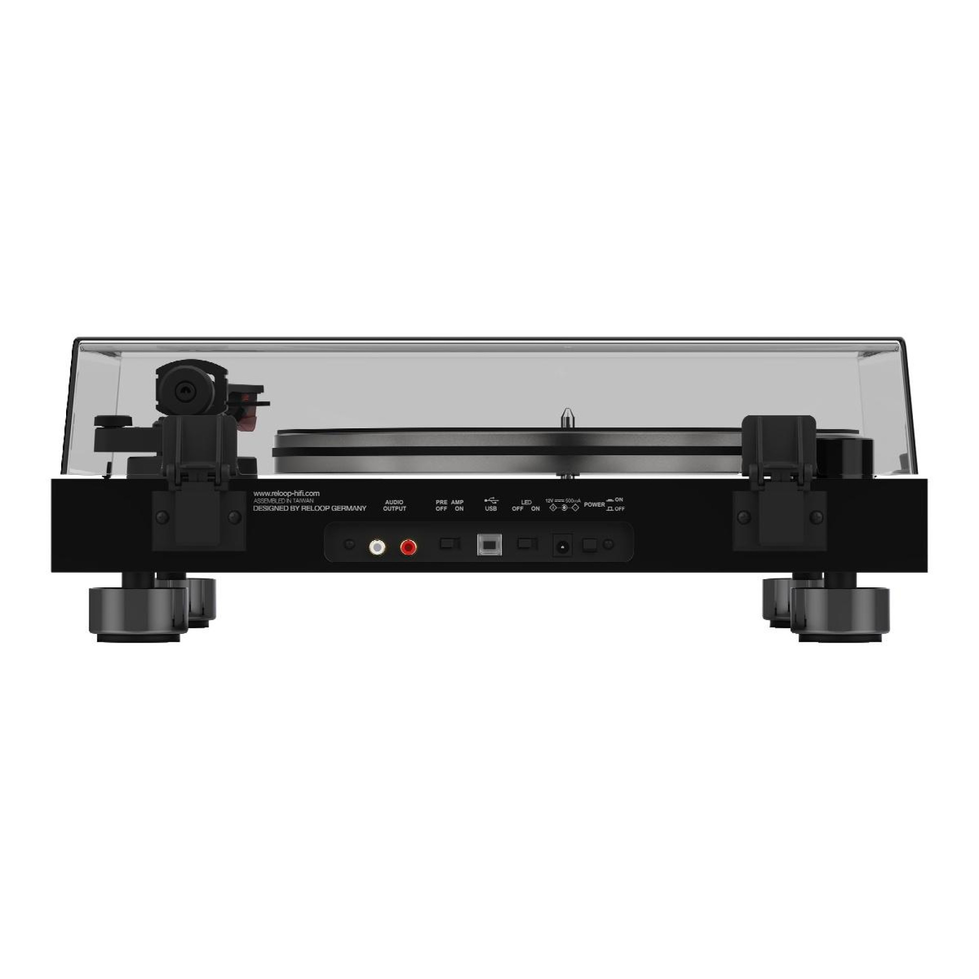 Reloop Turn 7 також має вбудований USB-вихід для оцифрування вінілових платівок. Позолочені роз'єми RCA гарантують найкращу передачу сигналу, а інтегрований попередній підсилювач дозволяє зручно перемикати між лінійним і фоно-сигналами. Міцний дерев'яний корпус з регульованими алюмінієвими ніжками забезпечує ефективне гасіння вібрацій. Глянцеве покриття додає елегантності і підкреслює високоякісну обробку програвача.