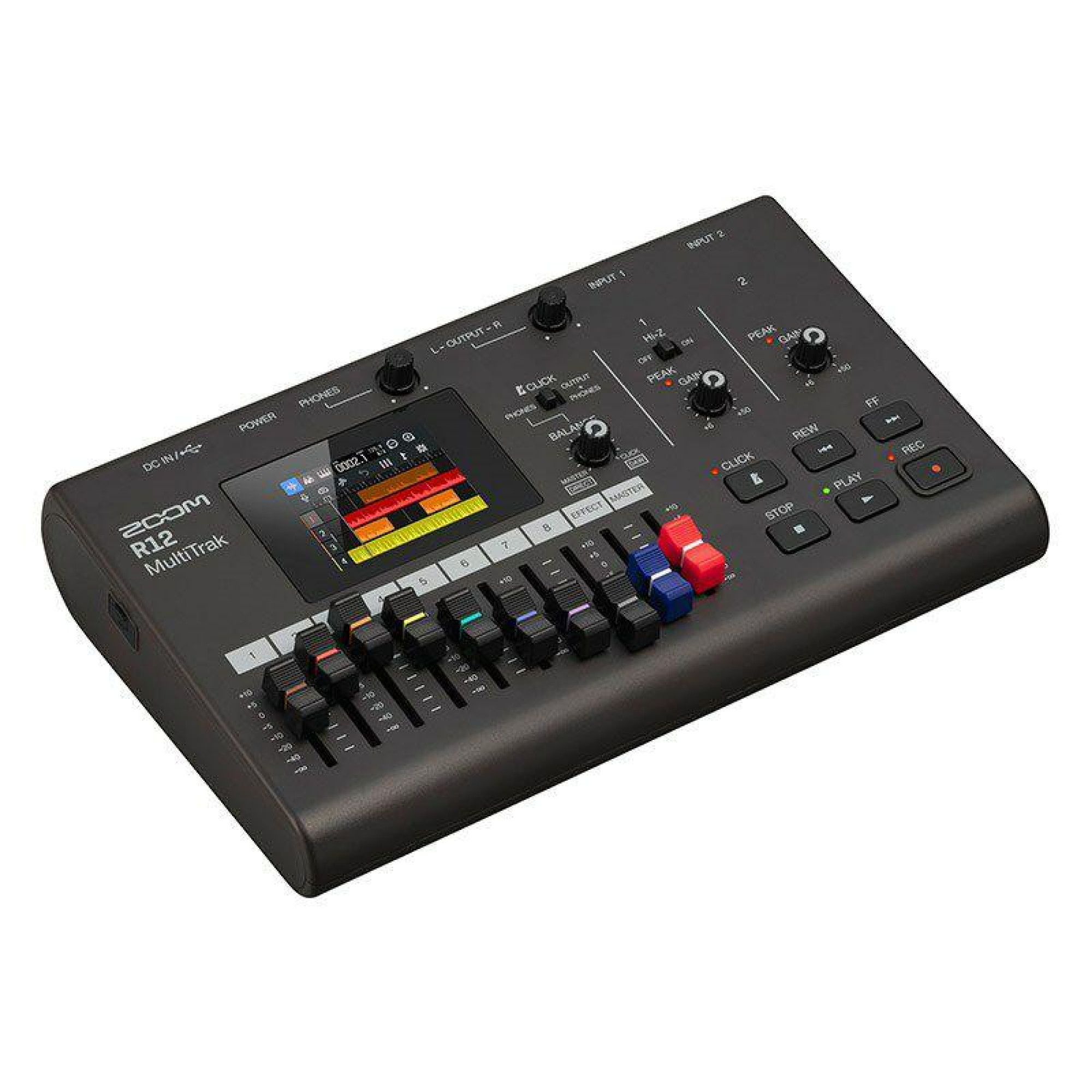 Zoom R12 – це компактний цифровий багатоканальний рекордер, створений для музикантів, які прагнуть повної свободи творчості. Він дозволяє записувати до 8 доріжок одночасно та забезпечує якісний звук завдяки 2 комбінованим входам XLR/TRS з функцією фантомного живлення і високоімпедансним перемикачем Hi-Z на першому вході.