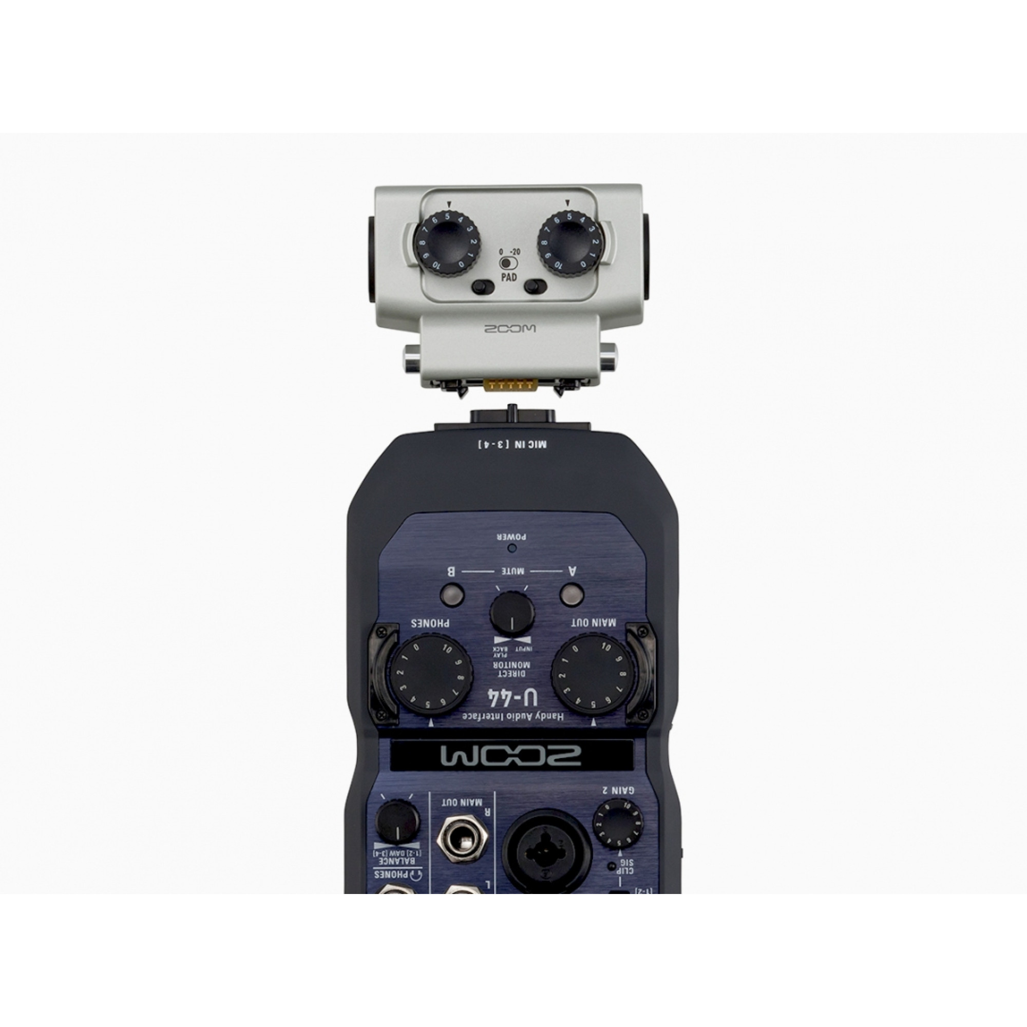 Завдяки 10-контактному роз'єму Zoom, U-44 сумісний з сімейством змінних мікрофонних капсулів Zoom (продаються окремо), що перетворює його на потужний арсенал інструментів для запису в польових умовах. Ви зможете проводити запис живих виступів або займатися саунд-дизайном і записом діалогів для Вашого фільму тощо. Змінні мікрофонні капсулі знімаються і встановлюються на U-44 так само легко, як об'єктиви сучасних камер.