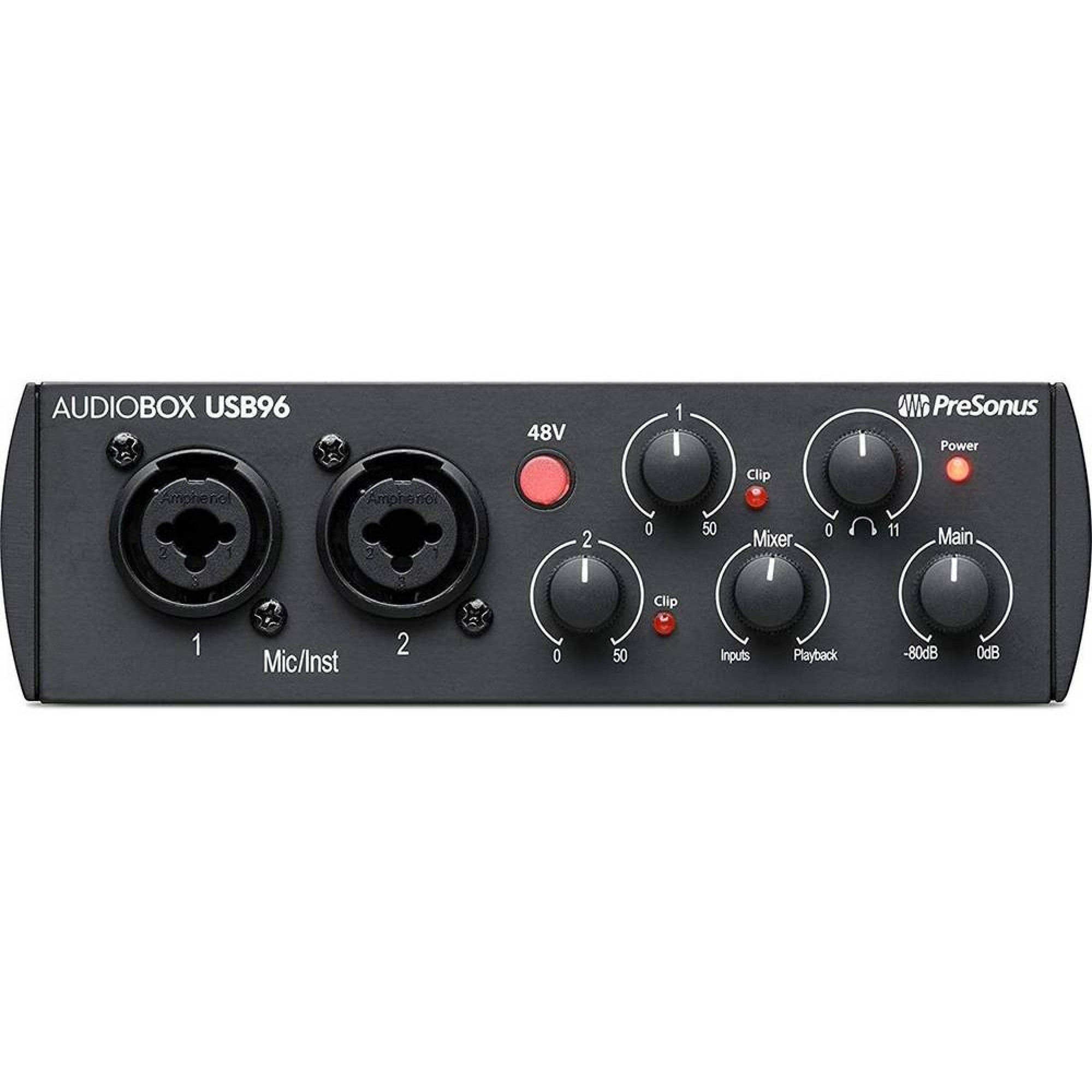 AudioBox USB 96 - серце AudioBox 96 Studio. Цей простий і зручний та невеликий аудіо / MIDI-інтерфейс має всі необхідні функції для основних потреб запису, включаючи два комбінованих мікрофонних / інструментальних входи і моніторинг з нульовою затримкою, так що ви можете просто підключити всі необхідні пристрої і відразу почати запис. AudioBox USB 96 з живленням від USB, призначений для подорожей, сумісний з більшістю програмного забезпечення для запису на Mac і Windows, оснащений високопродуктивними мікрофонними передпідсилювачами і 24-бітними перетворювачами 96 кГц професійної якості, спрощує запис у високому дозволі.
