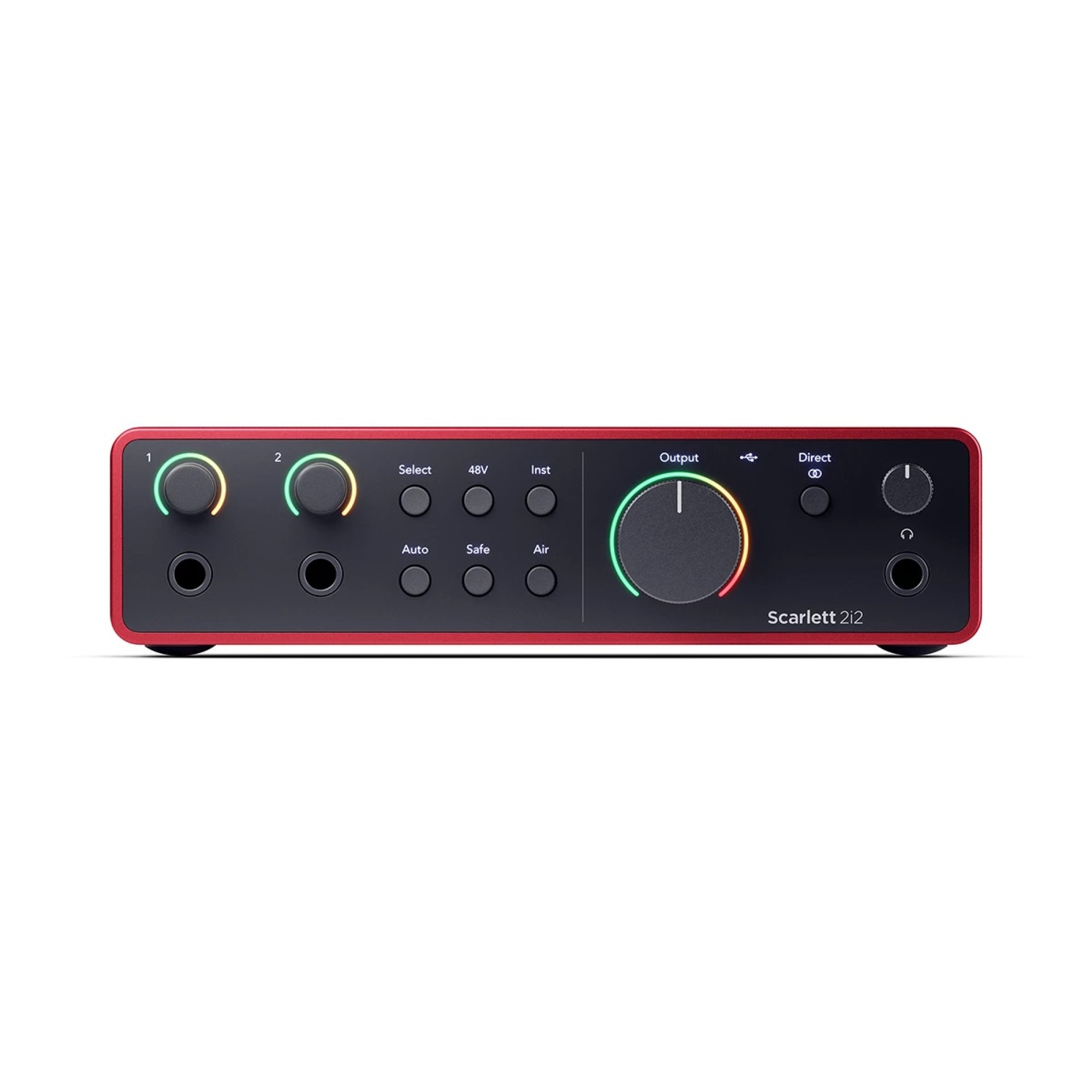 Аудіоінтерфейс Scarlett 2i2 підключається до комп'ютера через USB Type-C, забезпечуючи стабільне і швидке з'єднання. Він має два вхідні канали: два мікрофонних входи на роз’ємах XLR та два лінійних/інструментальних на TRS 1/4". Вбудовані передпідсилювачі з низьким рівнем шуму та фантомним живленням +48 В забезпечують високу якість звуку, що особливо важливо при використанні конденсаторних мікрофонів. Аналого-цифрове перетворення з якістю 24-біти/192 кГц гарантує чисте та детальне звучання. Два аналогові виходи на роз’ємах TRS 1/4" дозволяють підключати монітори, а вихід на навушники TRS 1/4" підтримує навушники з опором до 300 Ом.